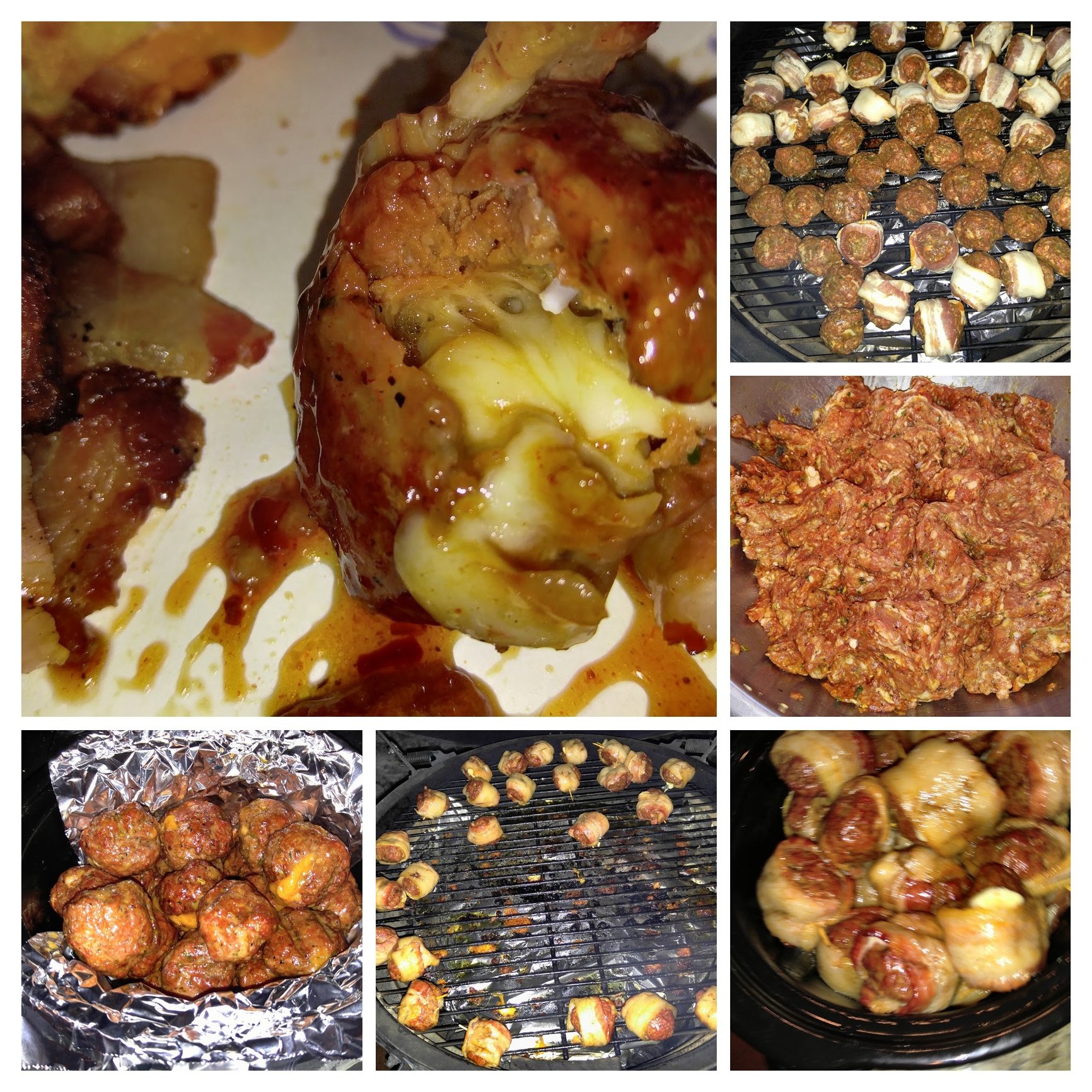 We hosted a New Year's Eve party last night and made it appitzers. I did a pork fatty explosion and cheese stuffed meatballs with some wrapped it bacon. This was my first time at doing the fatty and it will be fine again.