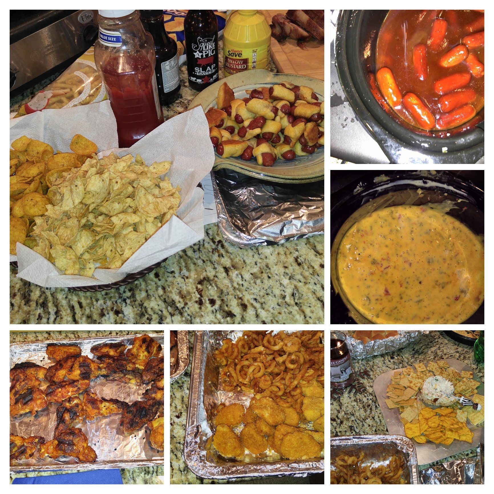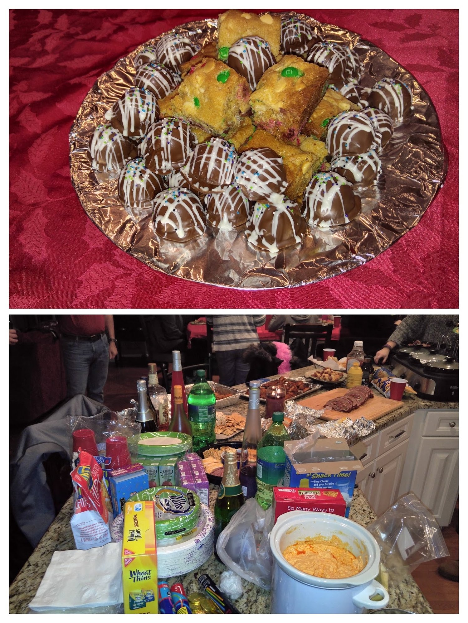 One neighbor brought chicken wings, another brought Buffalo sauce for them. Little smokies, cheese dip, M&M bars, Oreo cookies truffles, meat and cheese platter and chicken tenders with fries from Arby's. A ton of food it looked like.
