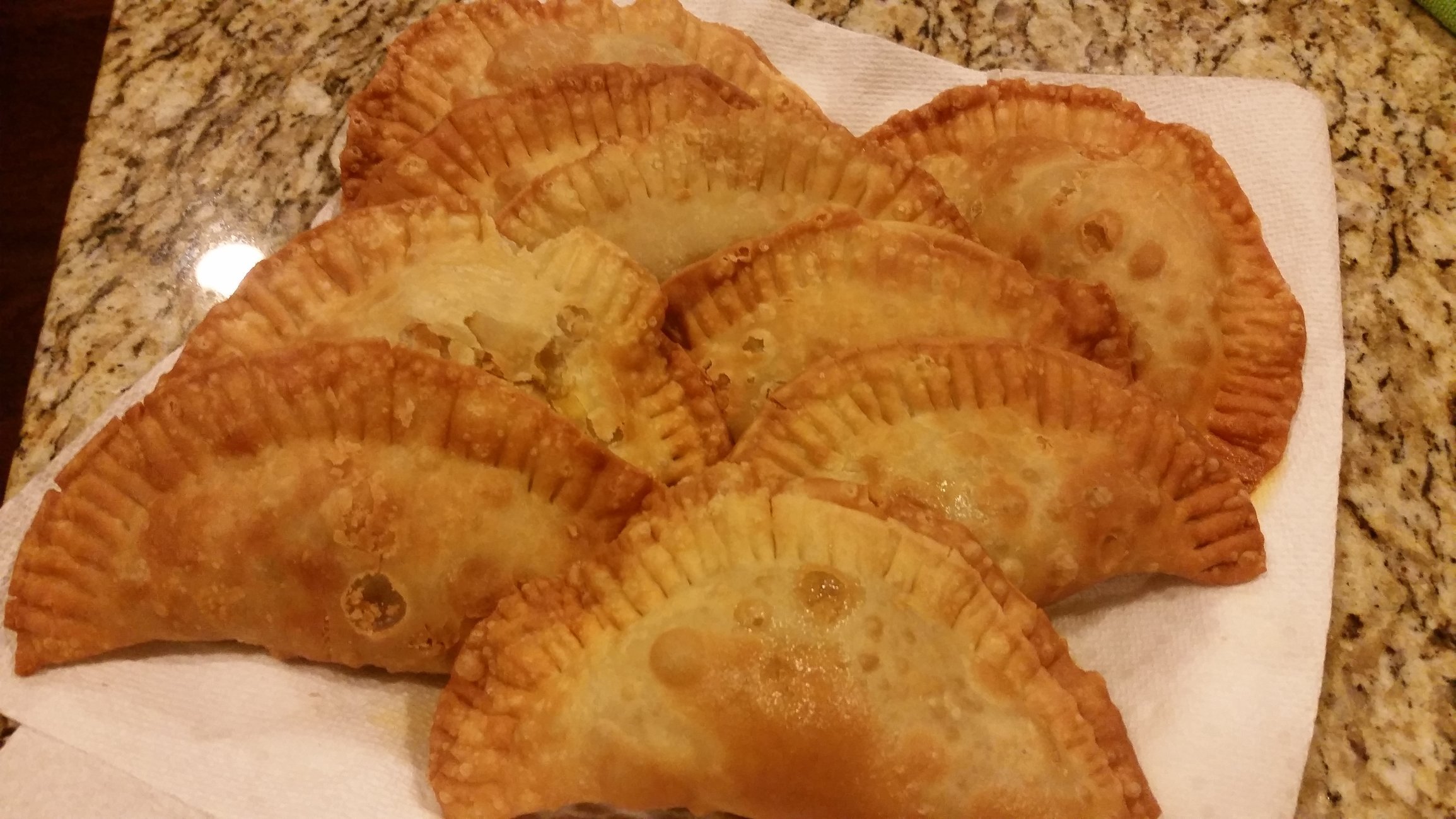 I finally found some frozen Goya turnover discs to make empanadas. I followed this recipe, minus the olives and oregano. Probably took around an hour total for cook time. I'm sure it would have gone faster if I had a bigger fryer, or baked them instead. In the future I will try cooking chicken on the egg and use that for the filling.
