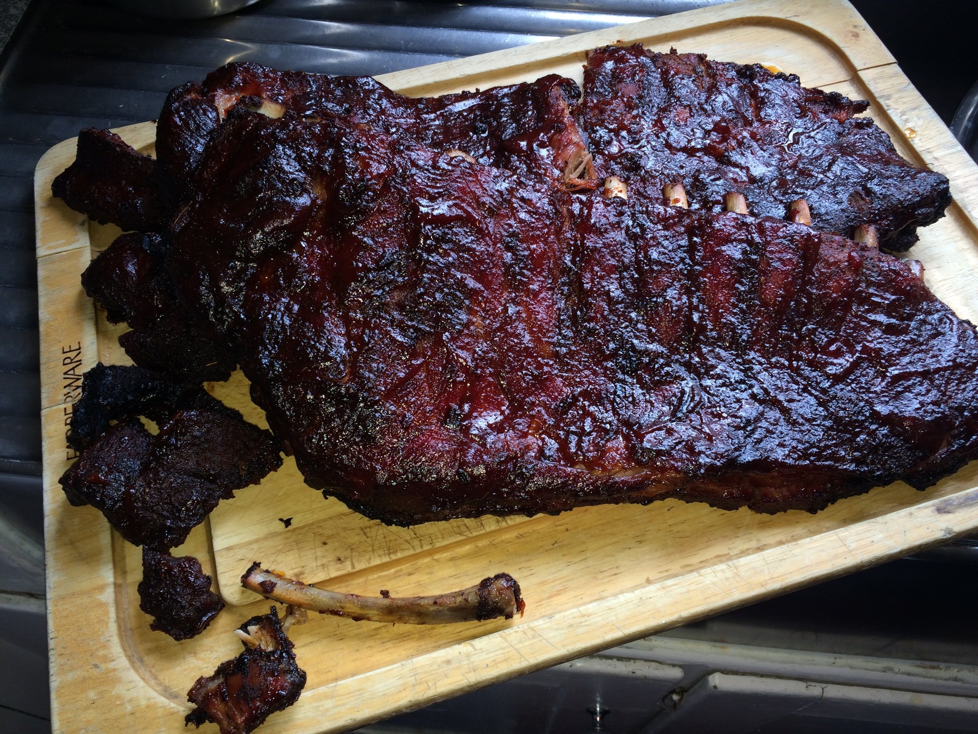 • That much sugar, on the ribs from the start, will blacken. Honey and brown sugar, what else can it do?