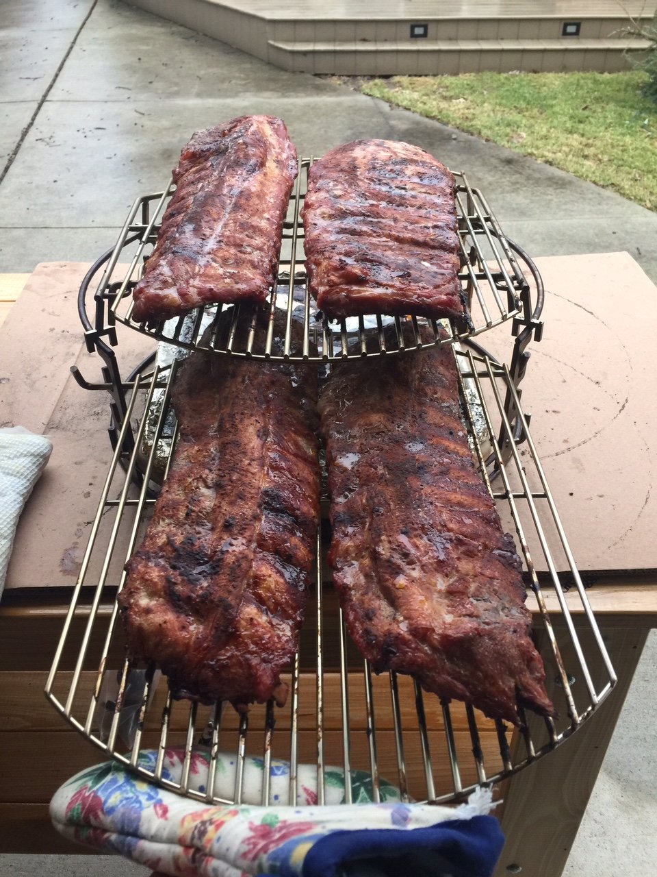 It looks like a couple of little piggies went to market and was purchased by you. Those look spot on.....especially sauced.Ellijay GA with a Medium & MiniMax