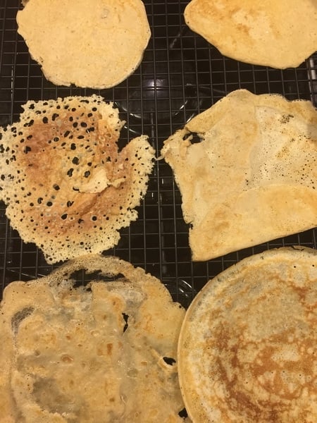 These were my first 6 crepes. Gah! Bottom right was the only good one.