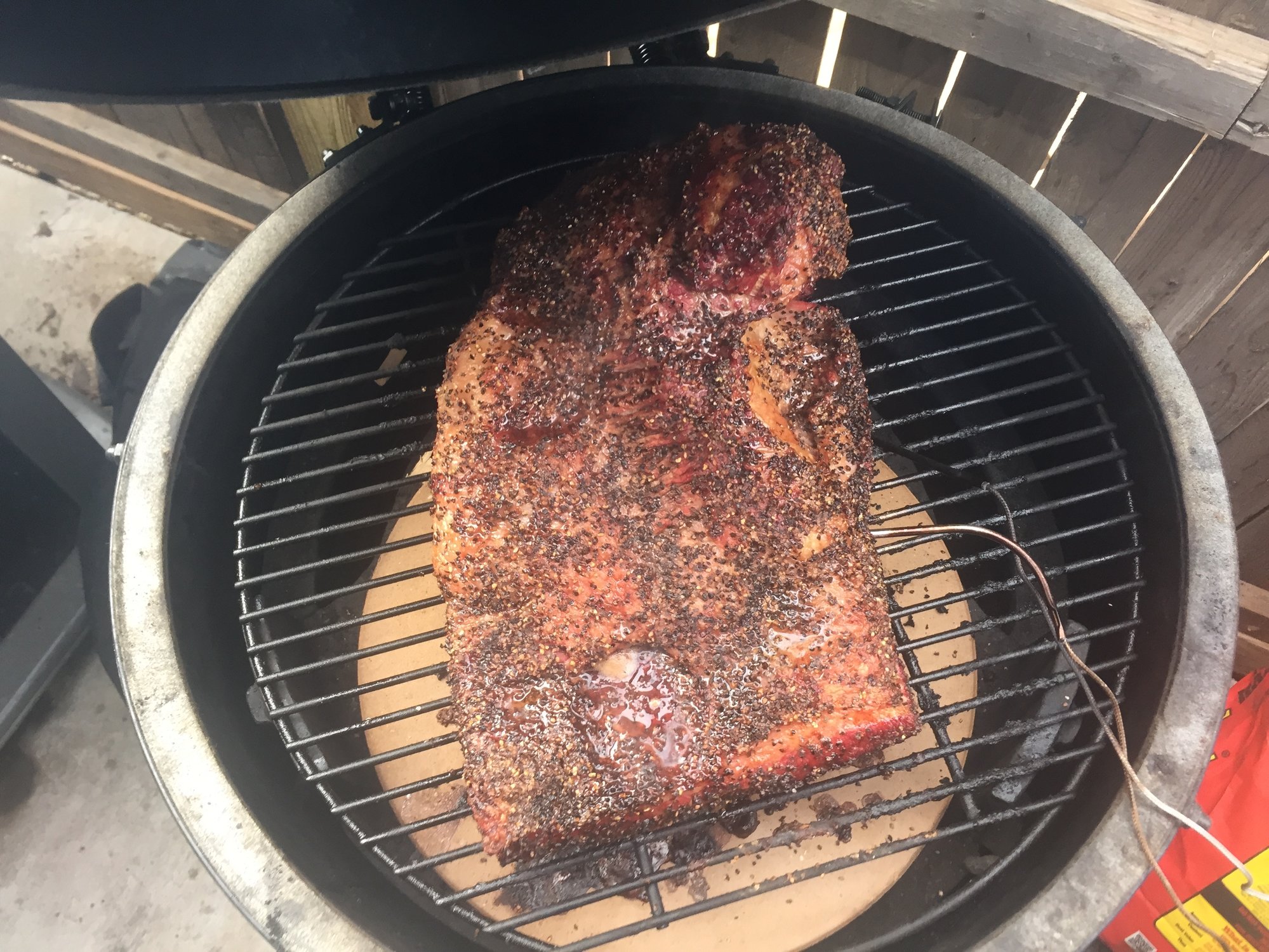 First I want to thank everyone that chimed in on my first post ( http://eggheadforum.com/discussion/1191430/first-brisket-on-the-egg-questions#latest ) and specifically SmyrnaGA for the idea of putting a pizza stone over the gap in the platesetter to get direct heat off of the flat.