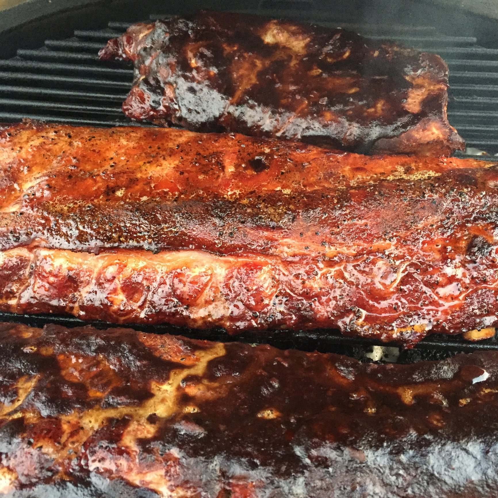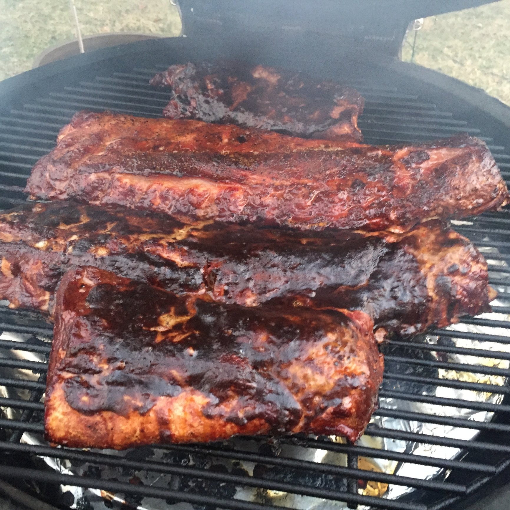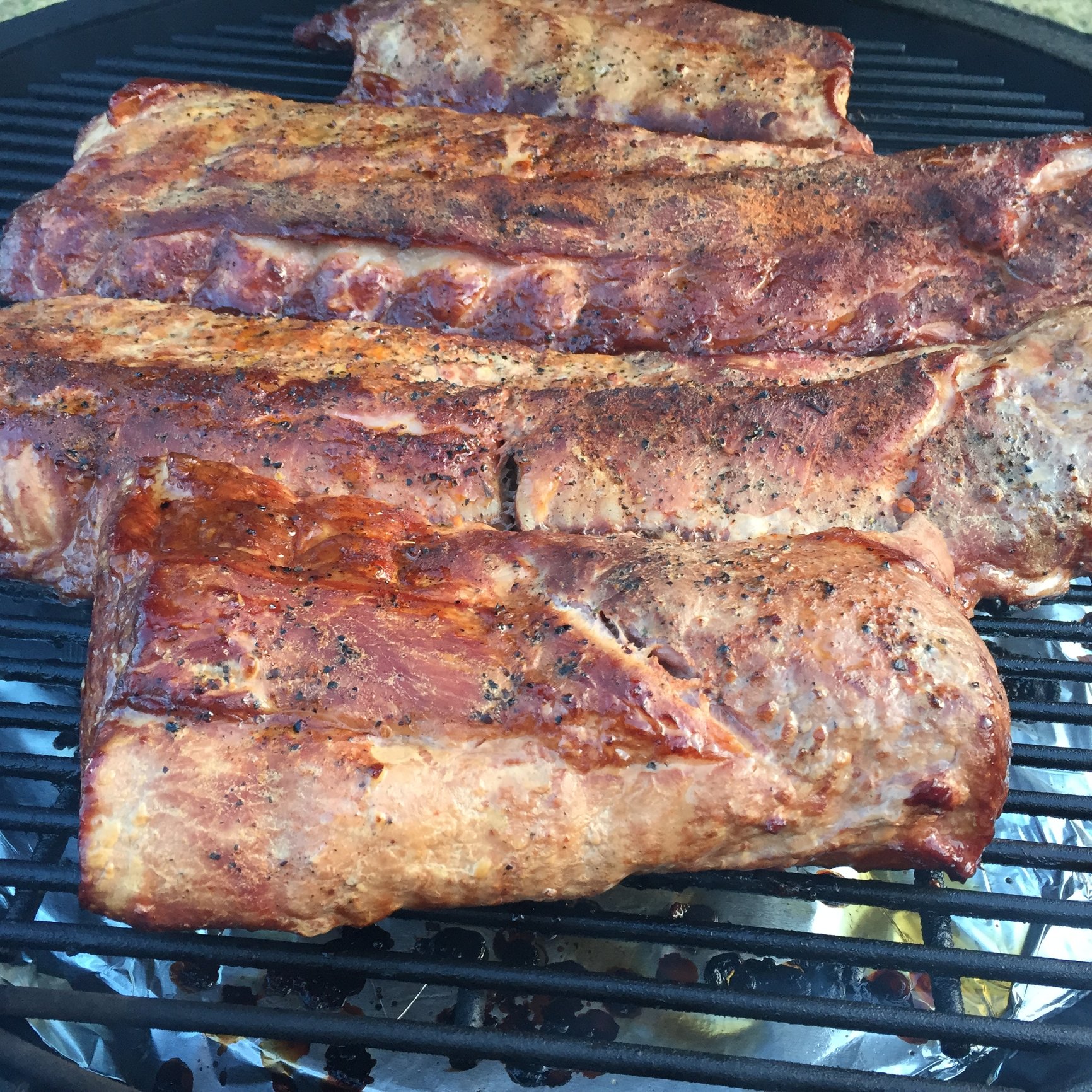 I rub them down with sugar, salt, and pepper, the cook indirect for 3 hrs at 250 F.