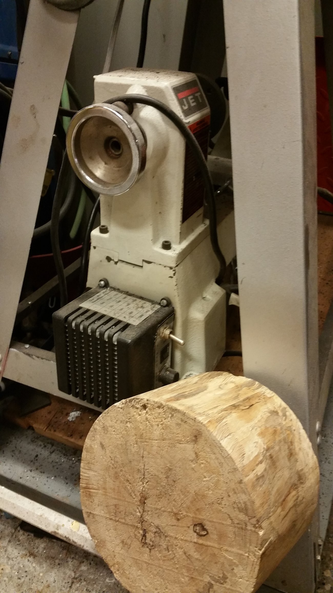 I put my smoke wood on the lathe and remove the bark.