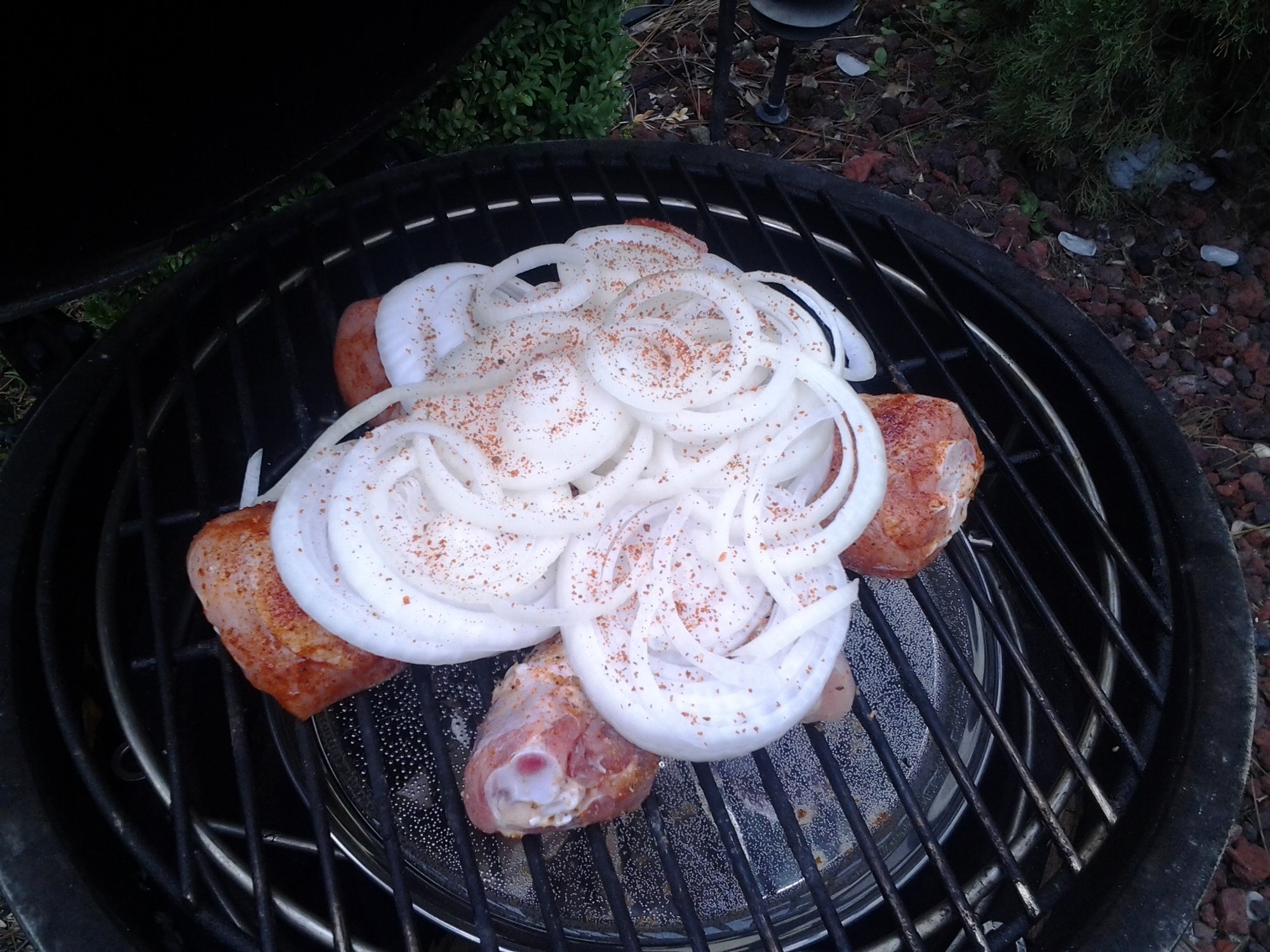 Keep it simple. Chicken, onions and your fav BBQ sauce.......with several paper towels.