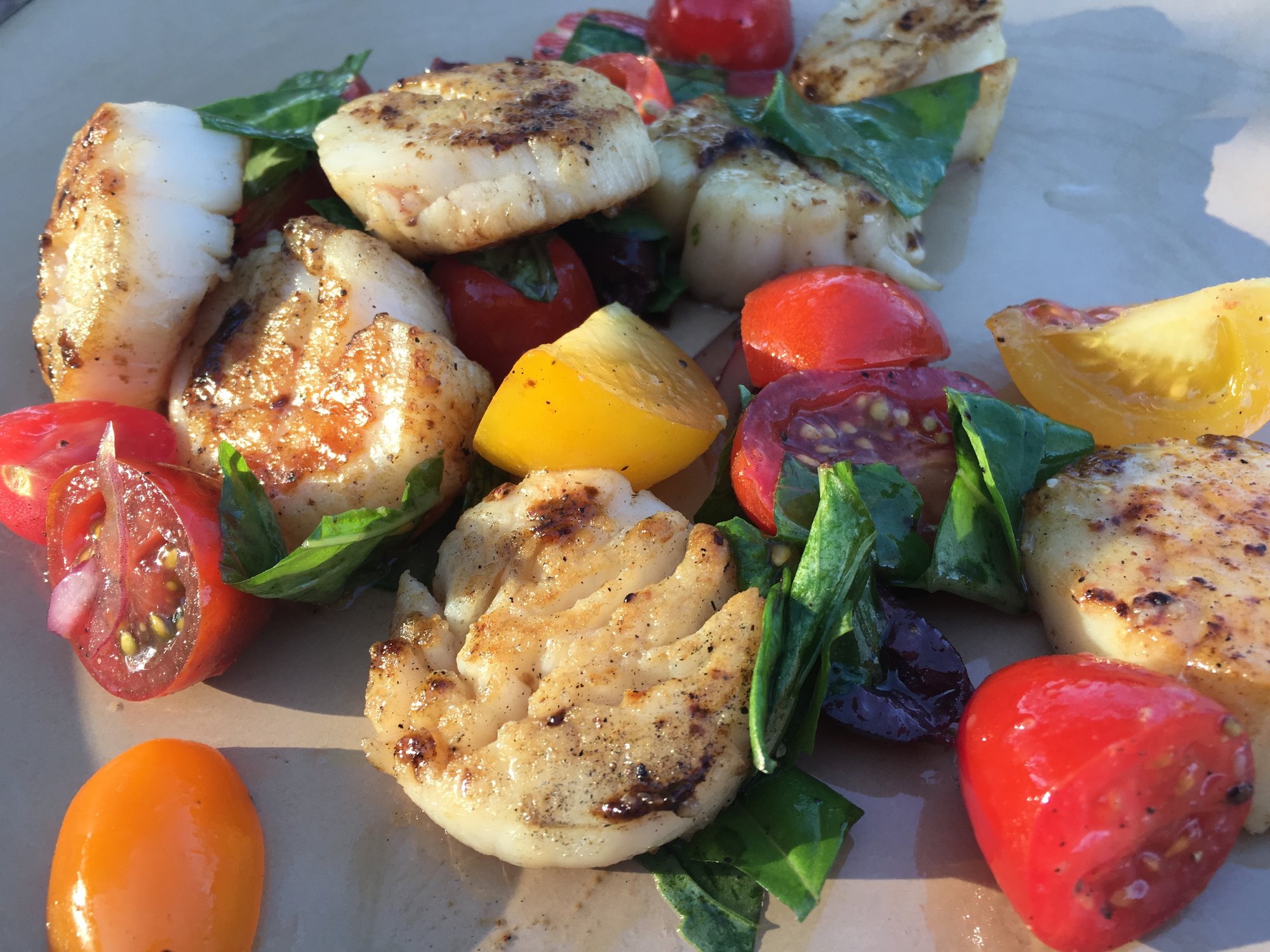 The caprese salad had heirloom tomatoes, kalamata olives, lemon juice, EVOO and of course grilled scallops.