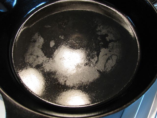 Any CI doctors here today? My favorite antique CI skillet has areas where it just won't take seasoning. I've cleaned it many times with just hot water and if need be used some kosher salt as grit. I've tried various oils and they simply run off the spots while the rest of the skillet just gets more shiney and slicker! These spots are not rough to the feel, but food does stick somewhat so I know the areas have an issue. Should I just take my orbital sander to the bottom and start the seasoning all over? The rest of the skillet outside and inside are perfectly seasoned so I was hoping to avoid starting the entire piece all over again. TIA