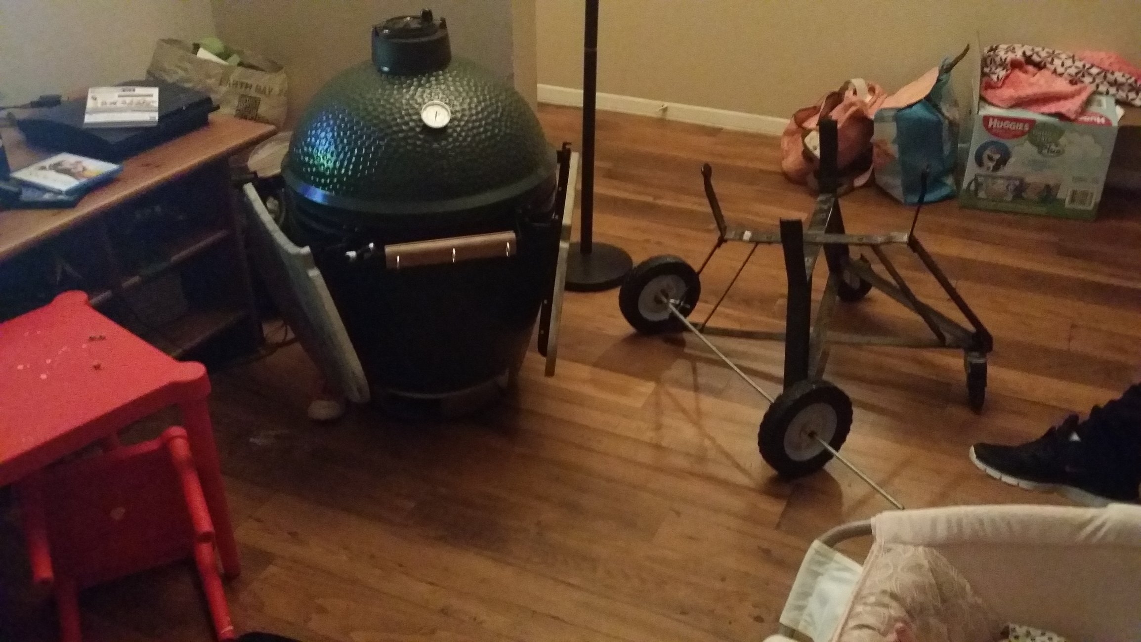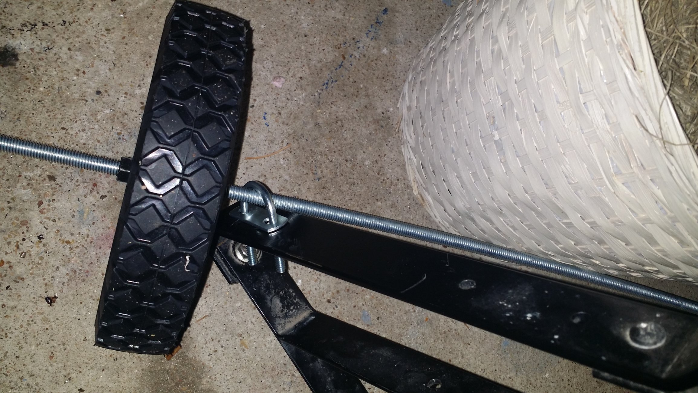 I wanted a more stable, lower center of gravity platform so i plan on attaching axles front and back with lawnmower wheels. Caster wheels it comes with are sketchy when trying to push over cracks or even small unseen debris. I sanded my handle and flipped it the other way around. I also replaced the screws that mounted the handle with hook screws(not sure what they are called). Will stain it or do something else with it, has a dull look. Not sure what else i have planned.