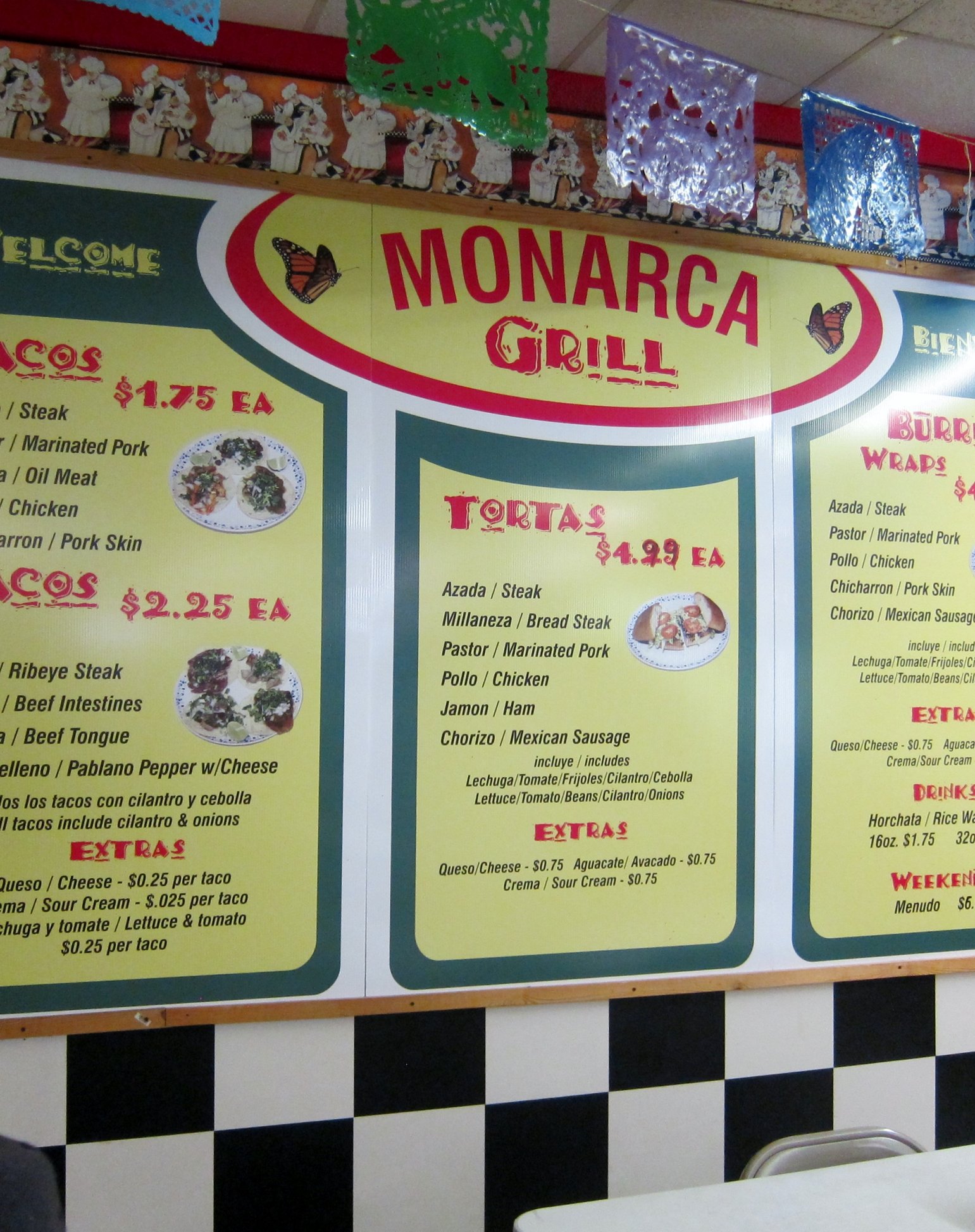 Inside back corner of the store is Monarcha Grill...