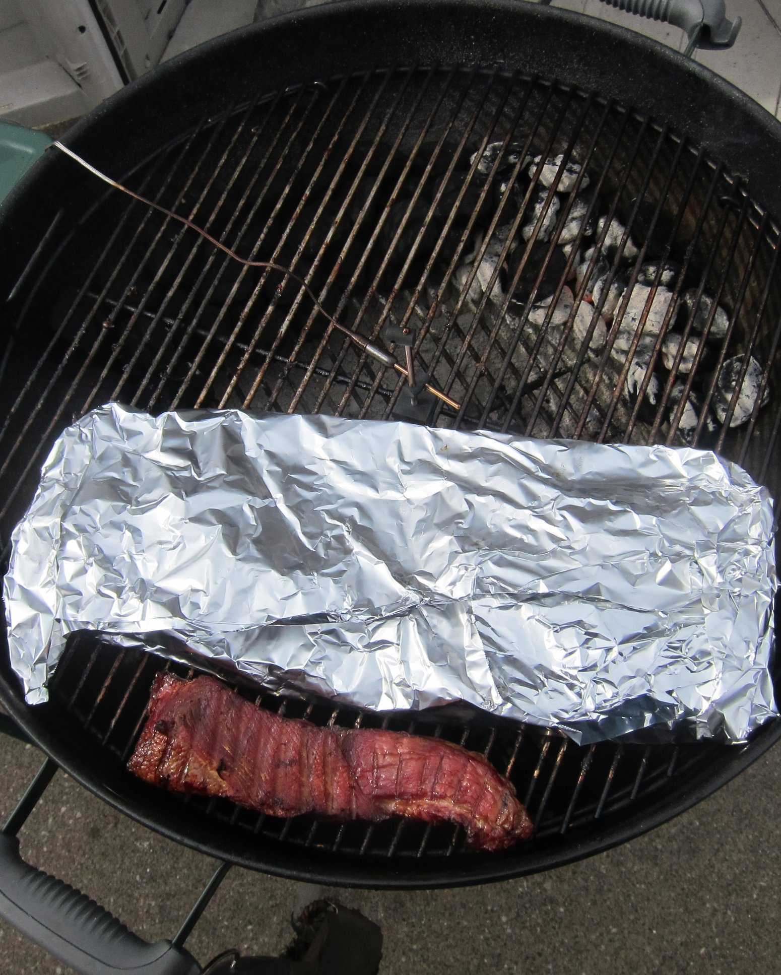 Got back home, replenished snake at the tail to burn back the way it started to finish the cook. Added some OJ, foiled.