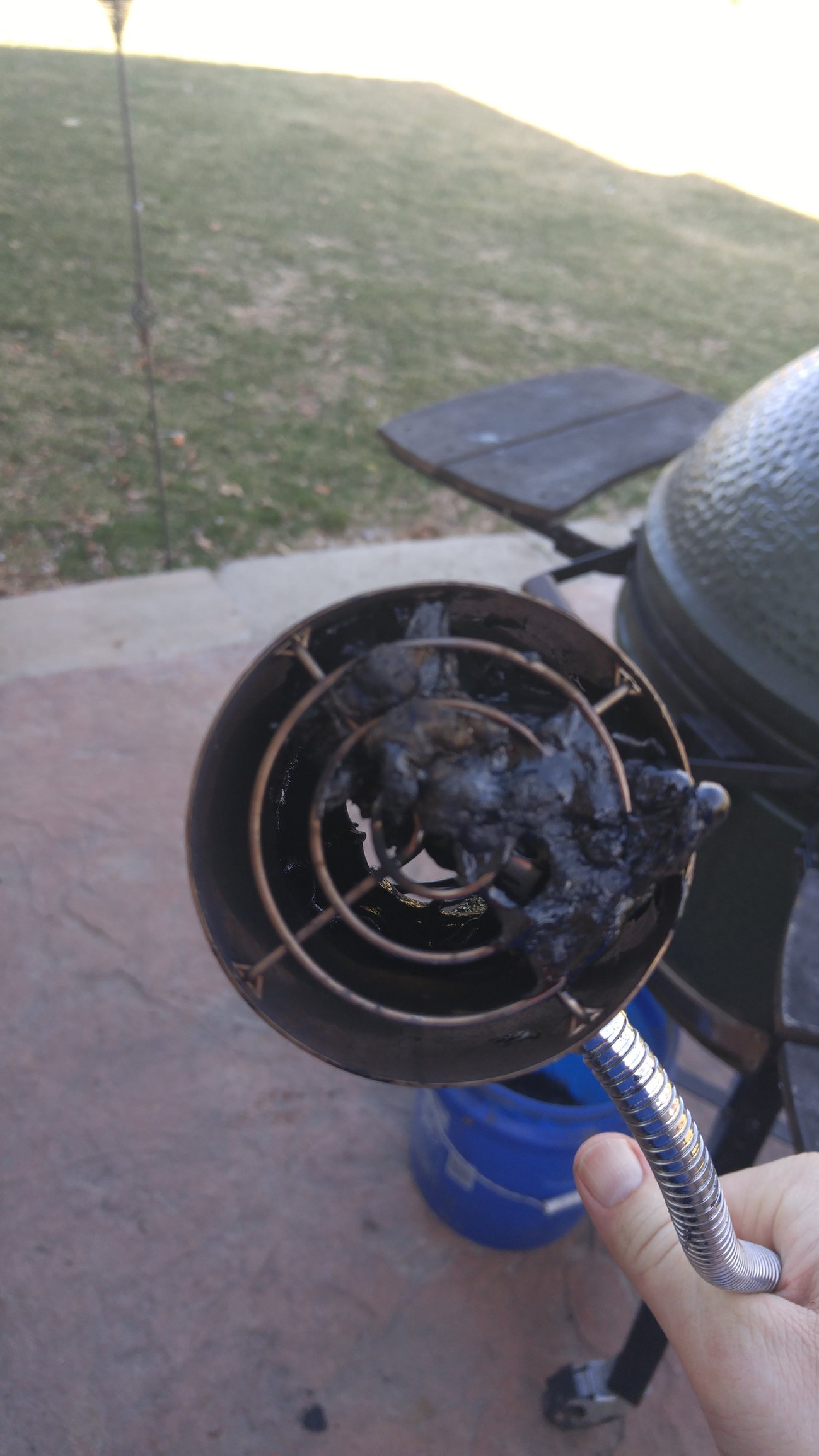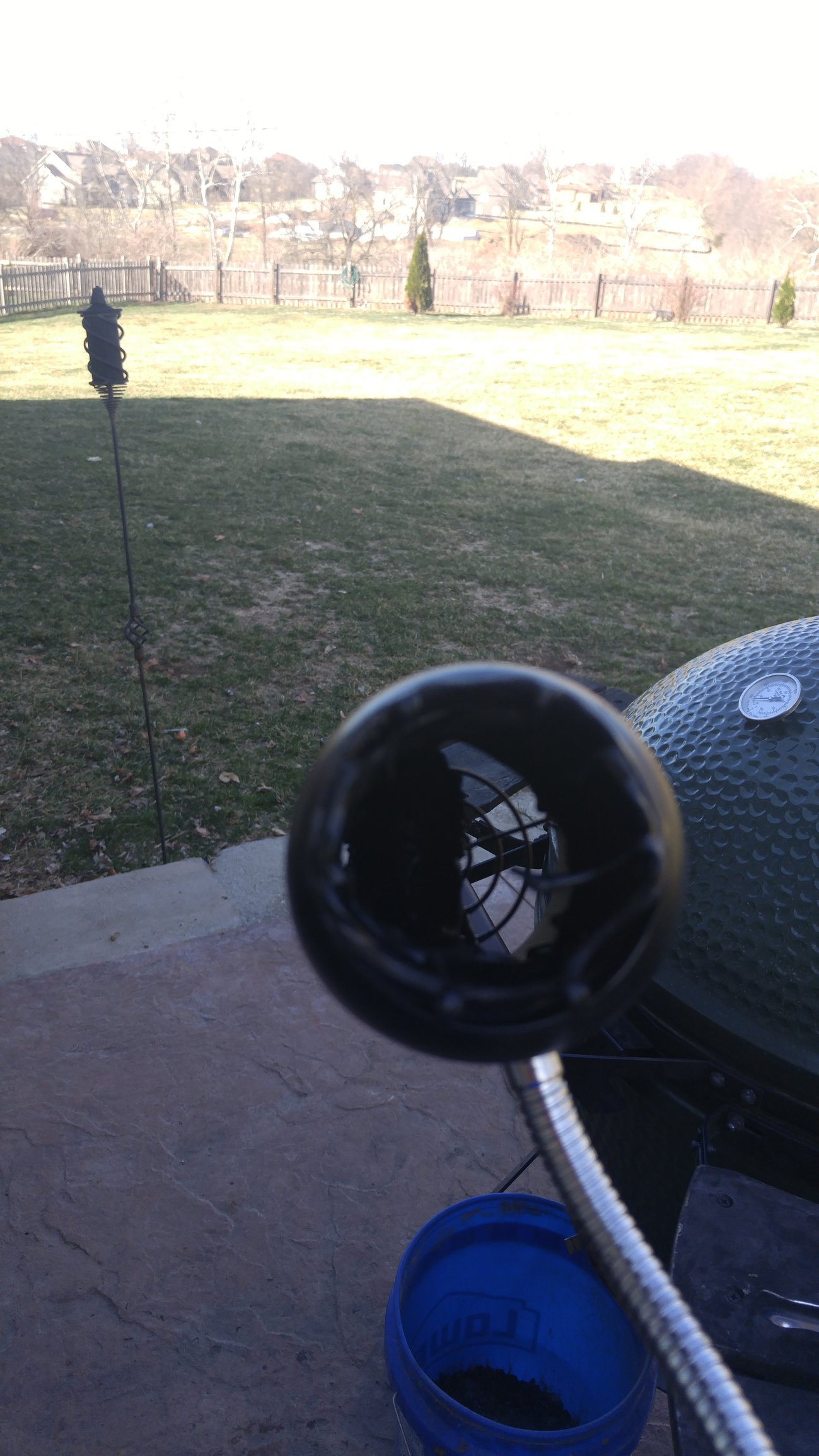 I've used on the bottom vent before, but it really didn't help much in speeding up getting to temp.  I have been using it clipped to the side before and blowing on the fire, but this time I walked away and forgot about it.