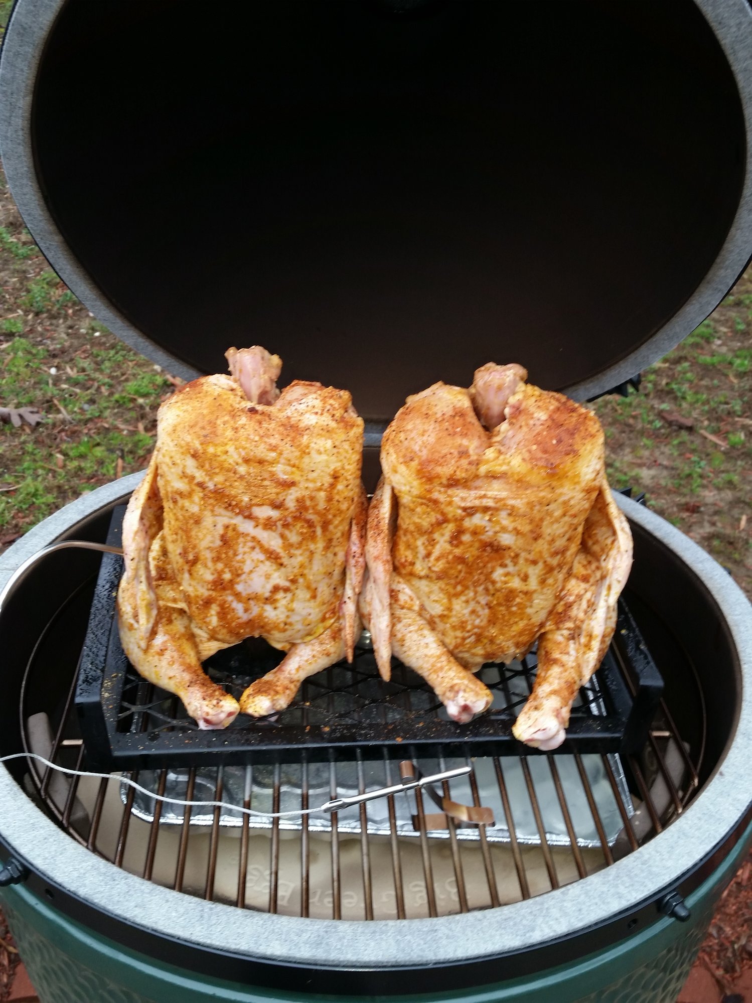 Decided I couldnt go a weekend without throwing something on the egg. Plus I had to try out my new thermo pro thermometer first time for chicken on it. Crossing my fingers with the help of my egg family here I can't go wrong.