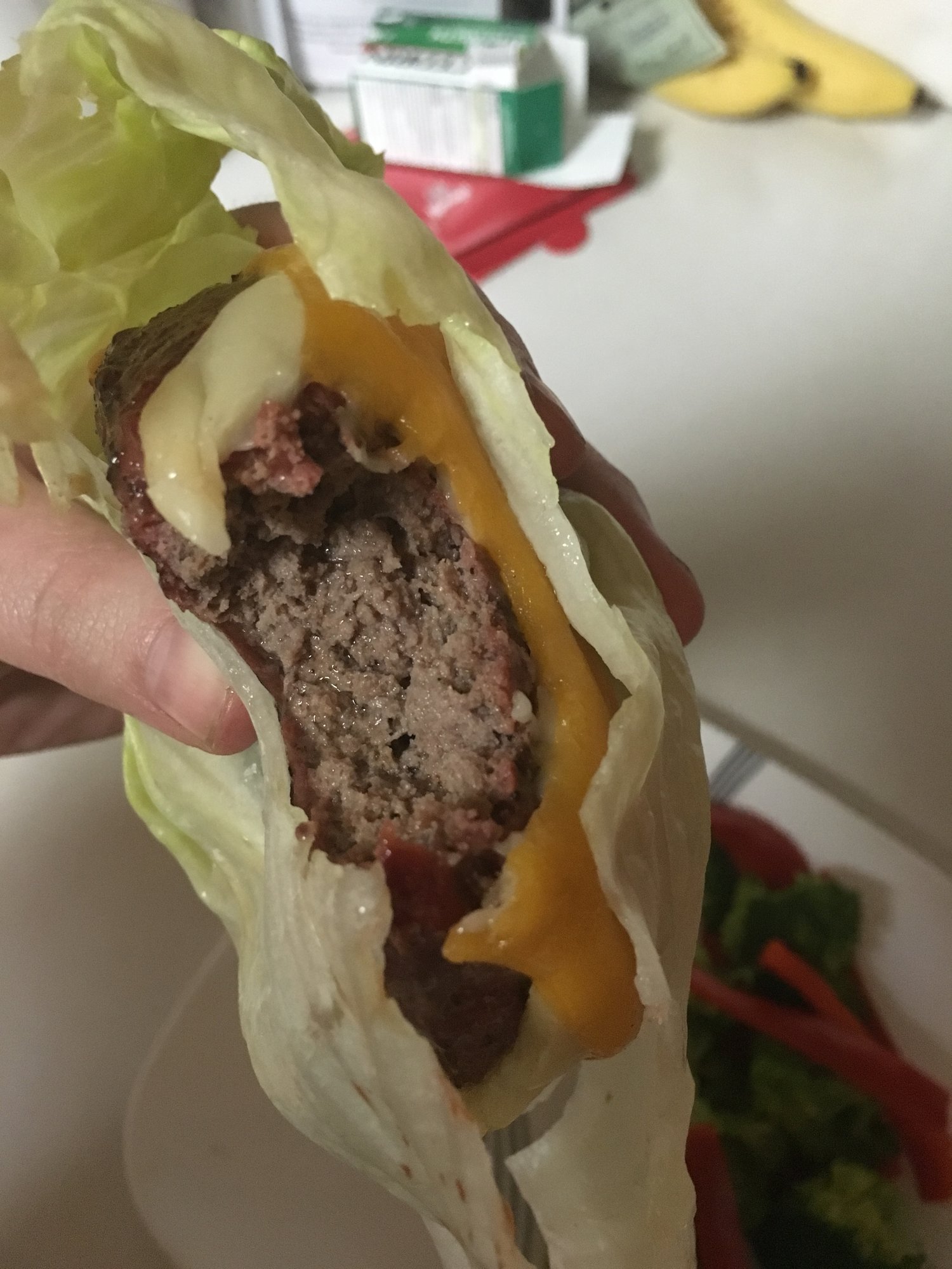 Both look excellent. I like the low carb "bun" you went with. Burger looks really juicy. I could go for one of those right now.Which came first the chicken or the egg? I egged the chicken and then I ate his leg.