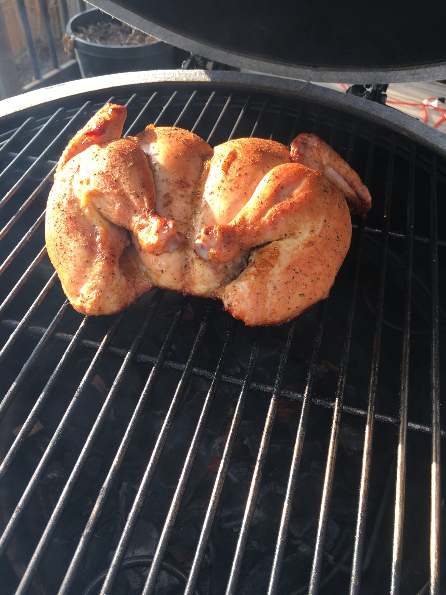 BBQ spatchcock chicken for lunch, burgers for dinner