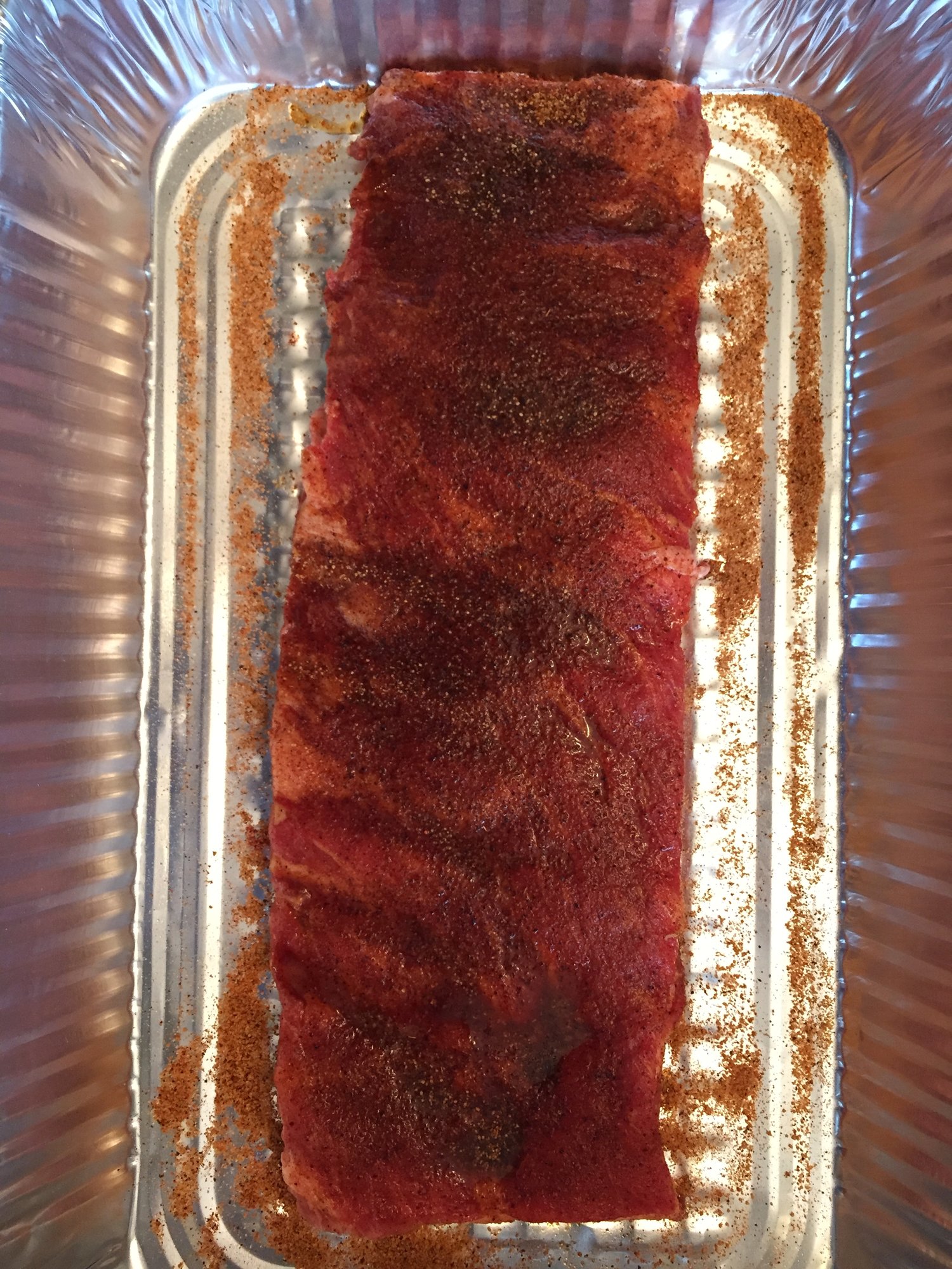Working from home today, just about to load up this rack of ribs that have been resting in the fridge for 1.5 hrs.