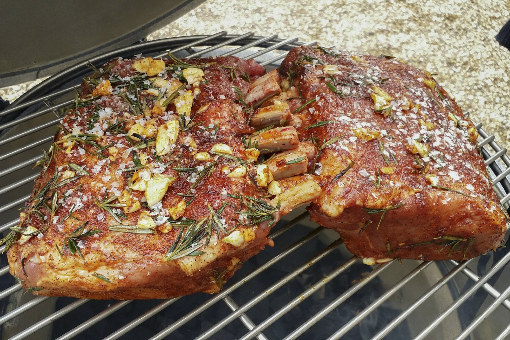 Rubbed with olive oil and bagged with fresh rosemary and crushed garlic for a few hours. Next time I will do this the night before as was my plan but the pre eggfest party got the best of me...Thank you @BayouMark.