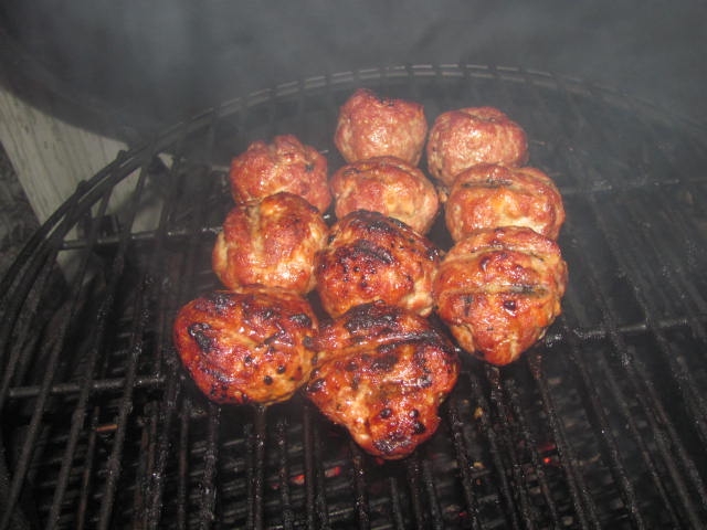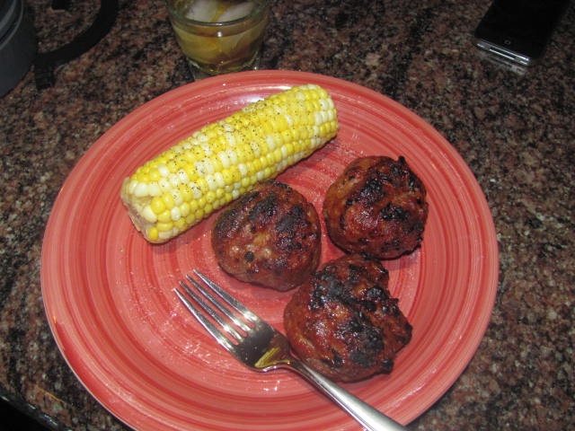 This was supposed to be teriyaki turkey balls, but I found I was out of teriyaki. In a pinch I mixed it with my brown sugar rub. Close, but the teriyaki is better. Still a good meal.