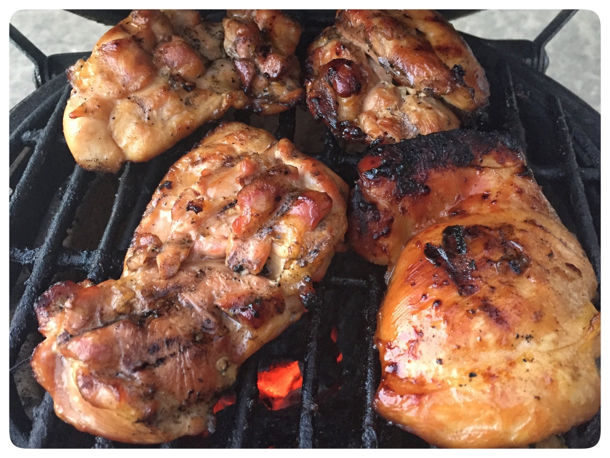 Quick 2hr teriyaki marinade on some thighs. On the mini at 400°. Not the quality of @doc_Eggerton chicken but not bad for a quicky.