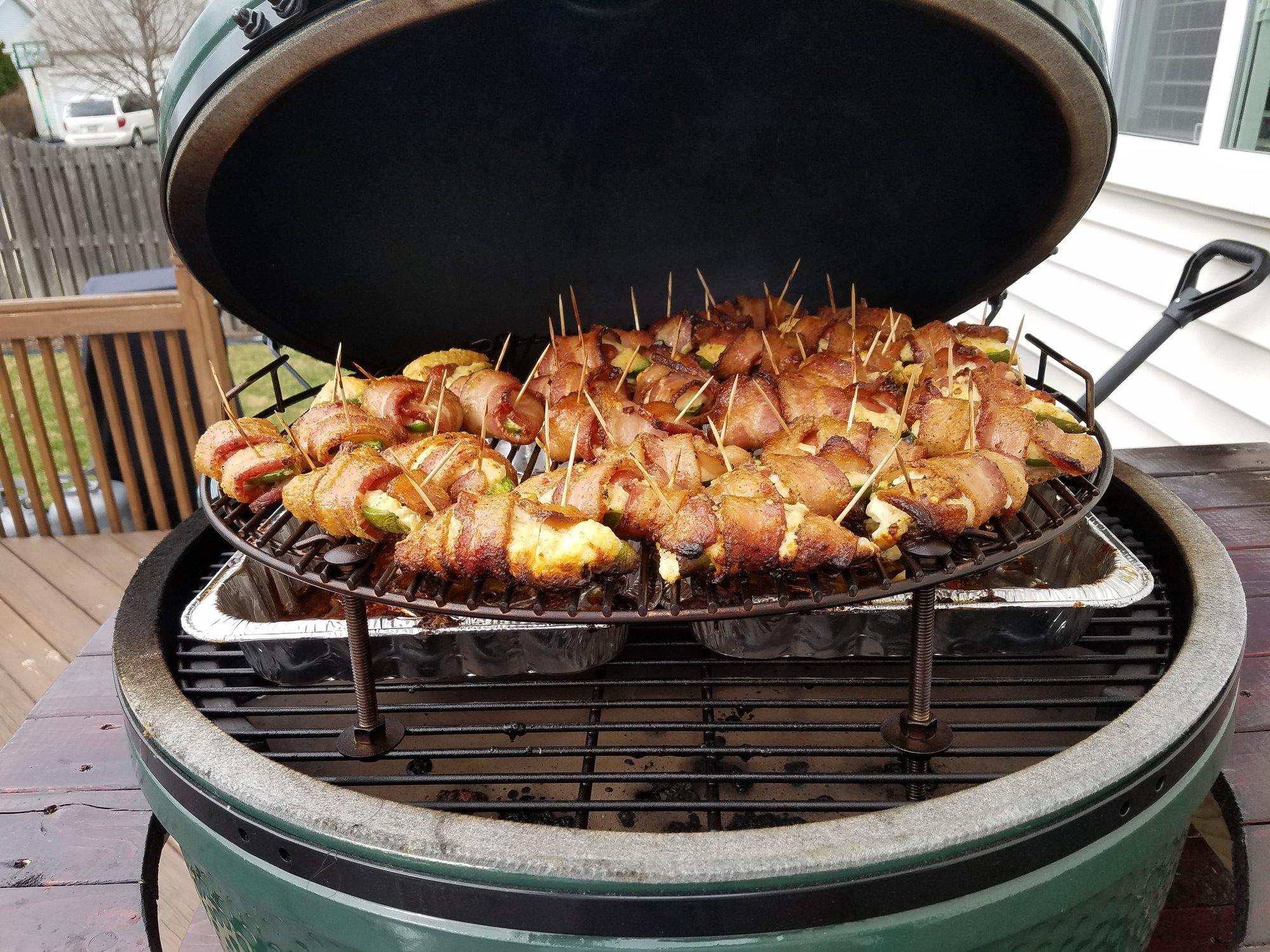 Nicely executed!  Every time I have made these they were a huge hit (for people who weren't scared of the jalepeno).   I agree with grim- the bacon looks perfect.  The raised grid was a good call to get crispy bacon.