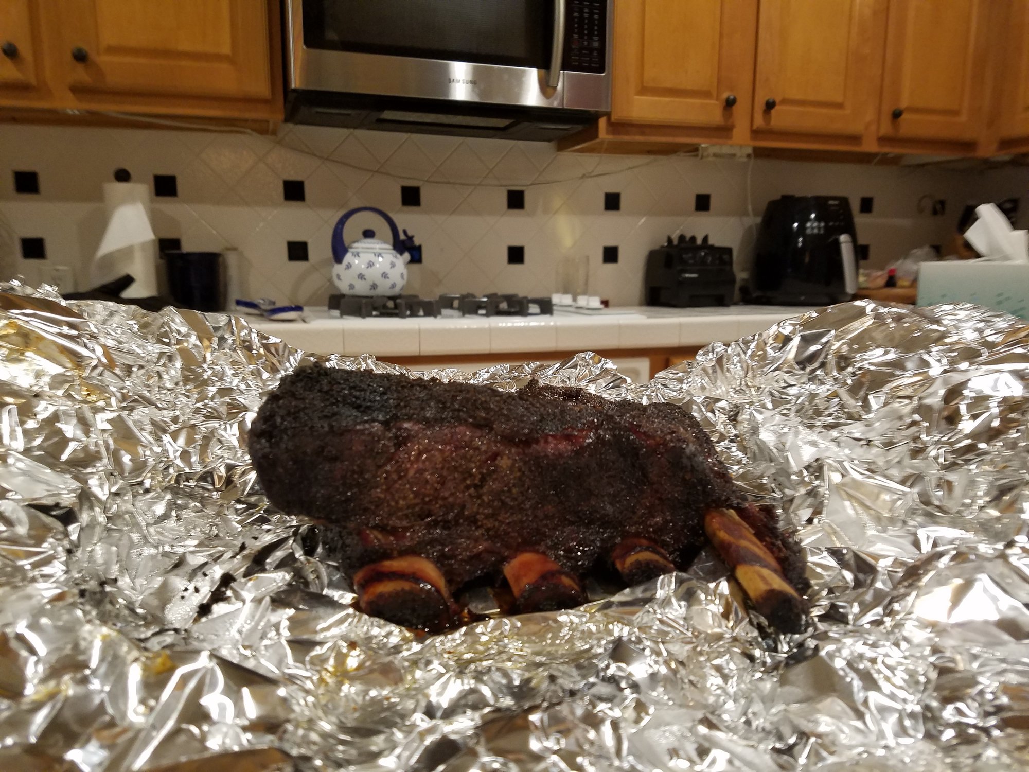 One of my favorite cooks, mine are usually done in 5 hrs or so at 250-275. Don't forget the finish pics. I've FTC'd a double batch and traveled 4 hrs with them to the kids and they did fine although they do loose a little bark.LBGE - I like the hot stuff. The big dry San Joaquin Valley, Clovis, CA