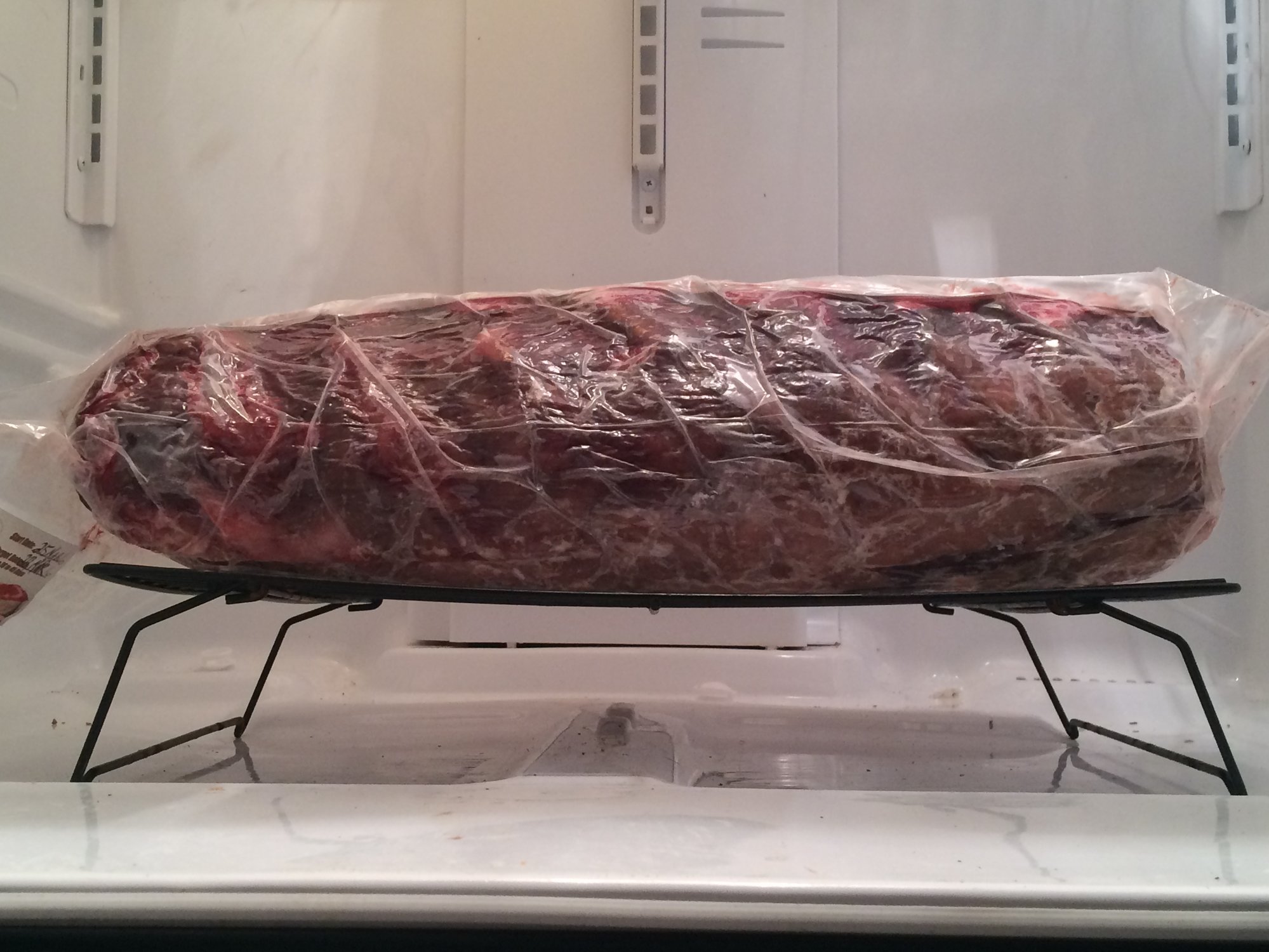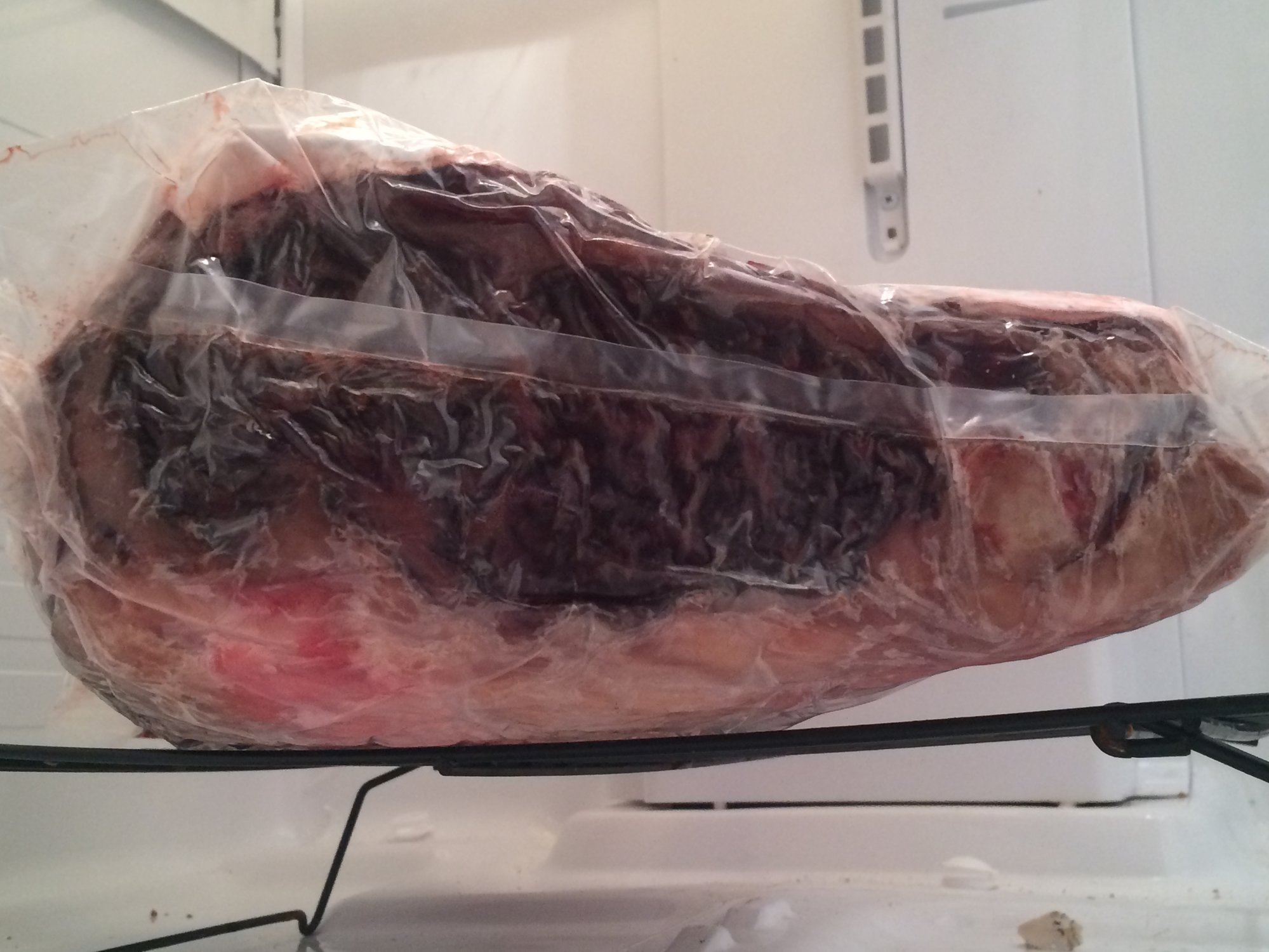 The rib roast went right into an UMAi bag and sits in the bottom of the fridge for the next four weeks. I'm only going 28 days because I'm a little nervous about the wife's pallet. She's a carnivor, but I'm positive she would murder me if after I spent all that money on the meat, she couldn't eat it. So for this run 28 days it is. Funny note, when I told her what I had spent, her only word were, "Well just don't fü€k it up." Lol #soulmate