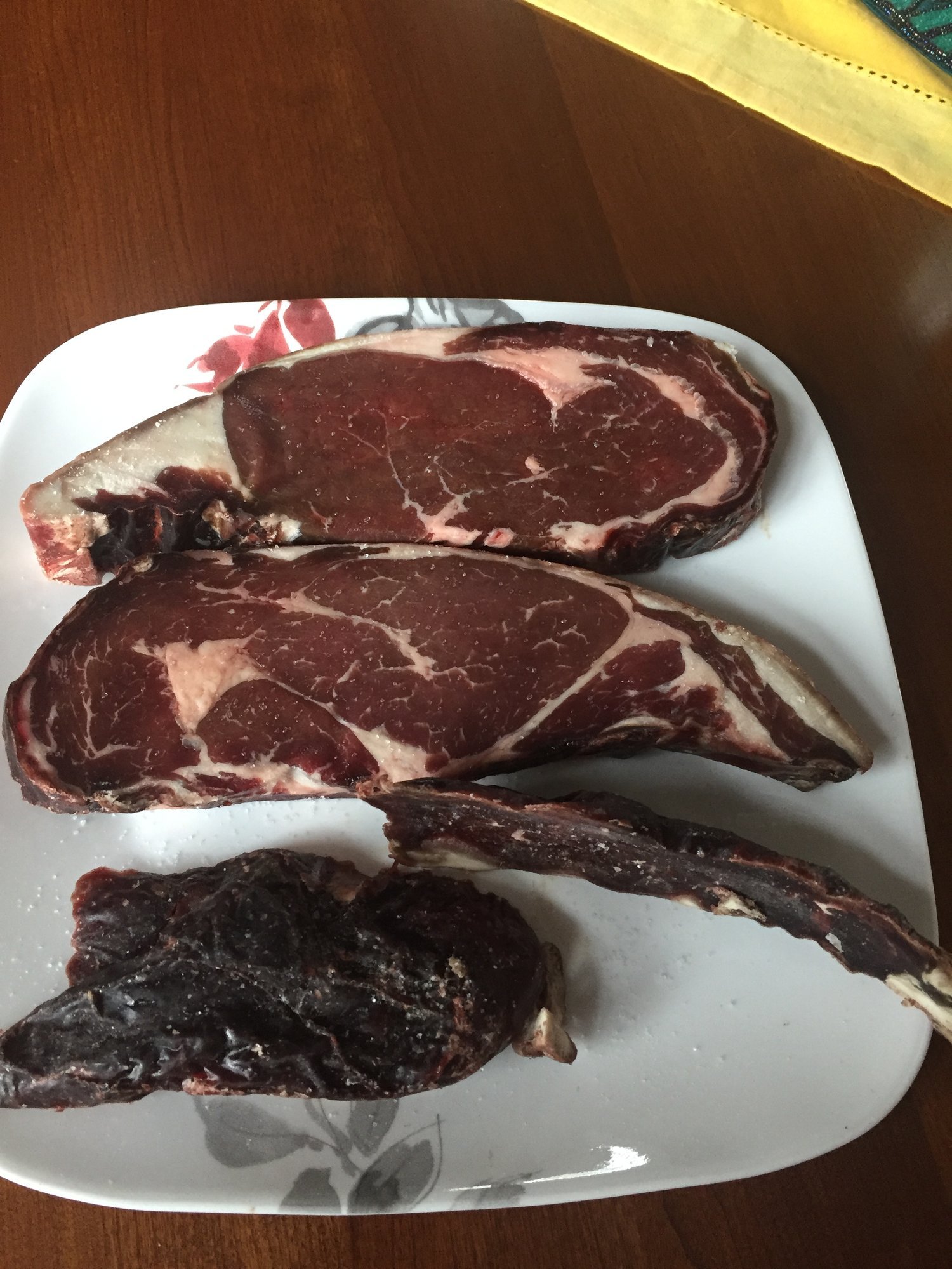 Lookin good @GalanteNate_OneEa. Just had my 43 day rib eyes tonight. Very good! I trimmed nothing and the outer bark was awesome! -