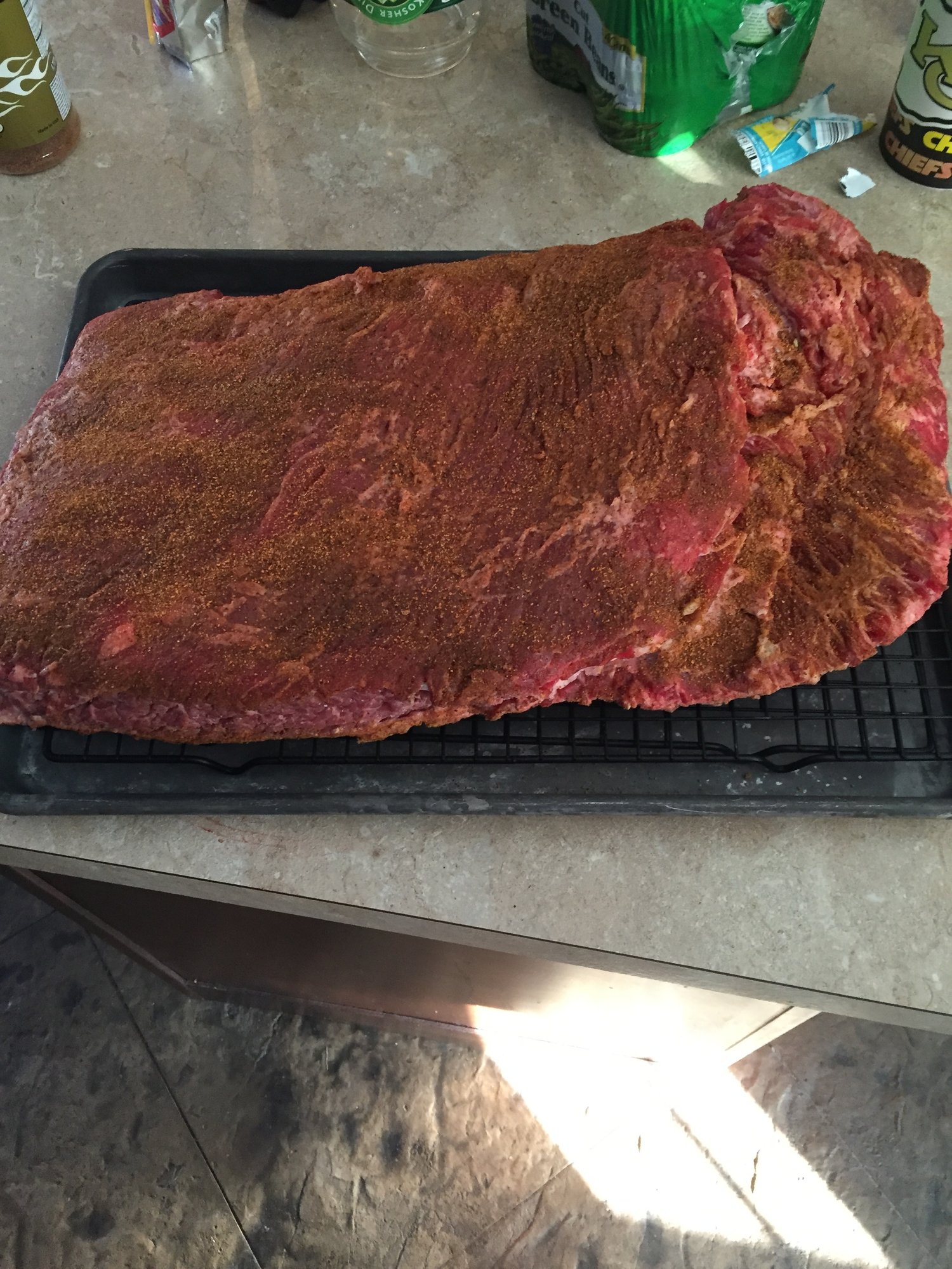 Trimmed and seasoned last night before it went in the fridge. After trimming it came in at 13.5lbs.