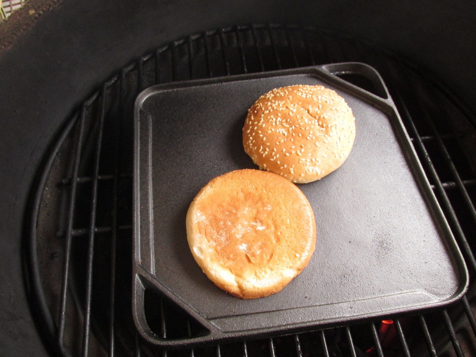 I used a cast iron griddle I found at Target last year, and left the ground meat very loosely formed.