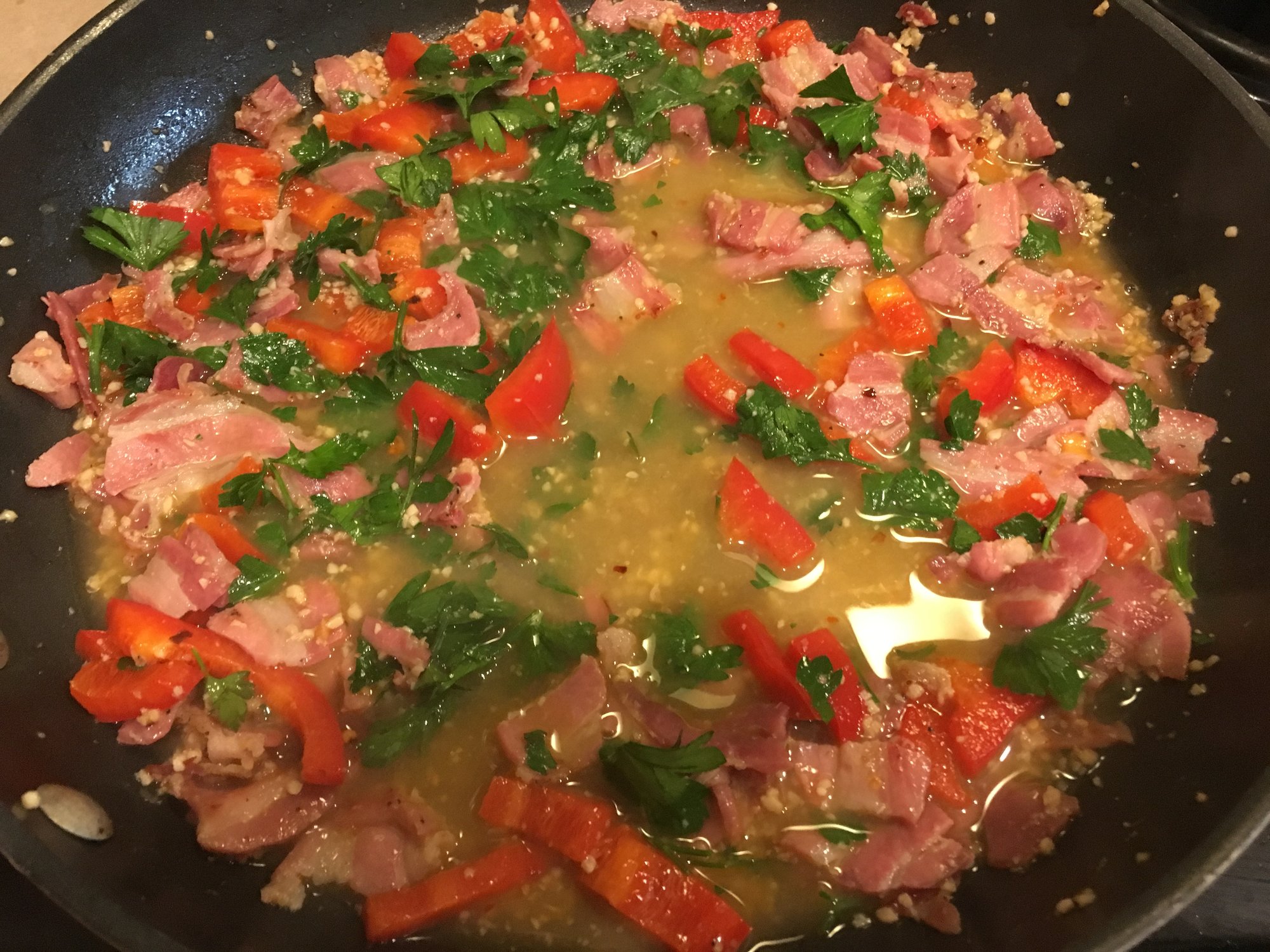 The clams were cooked in a Cartoccio: pancetta, garlic, bell pepper, wine and cherry tomatoes. Looked great but slightly underwhelmed.