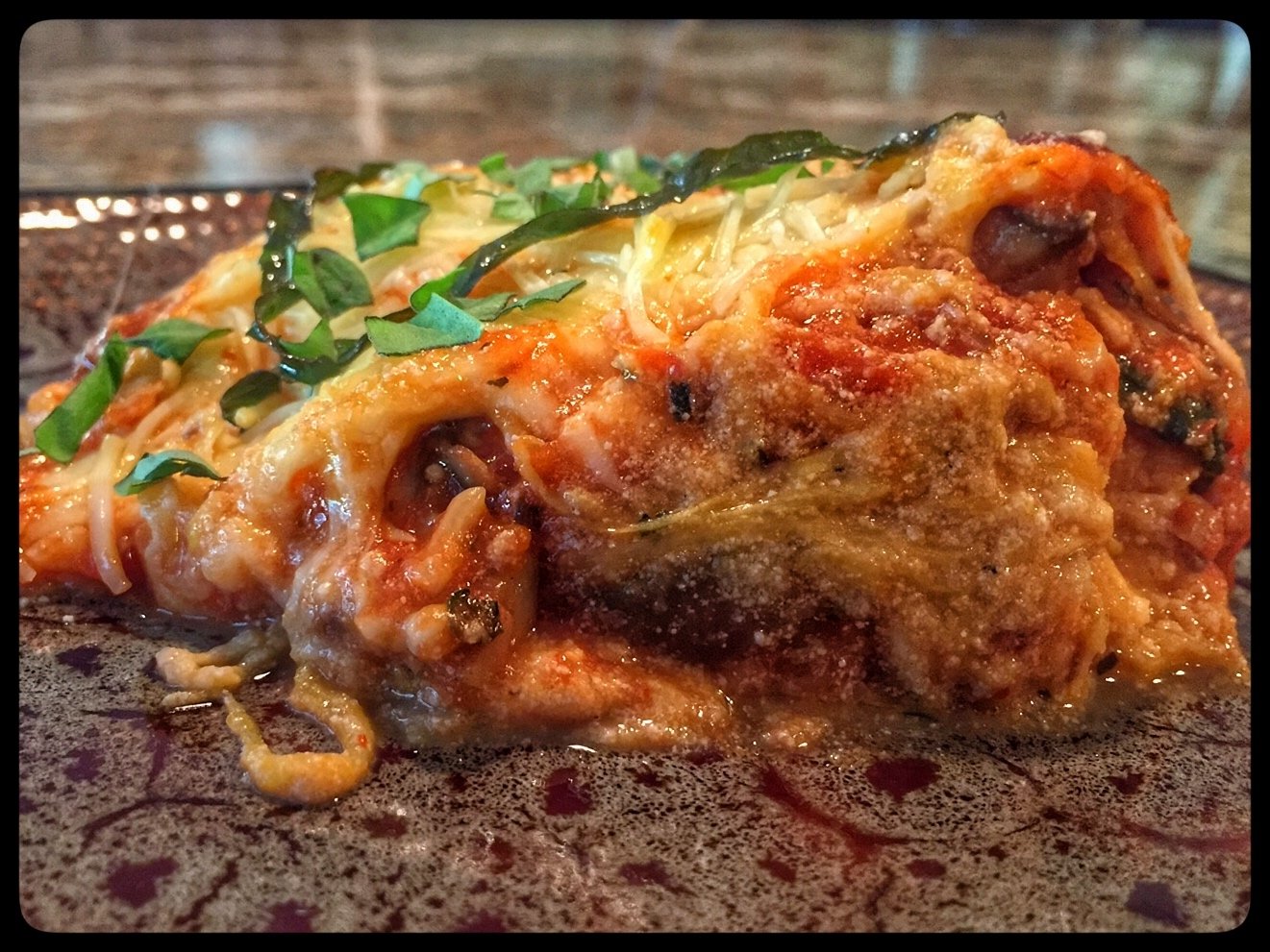 Shredded the squash and mixed with ricotta,parm spread in the pan covered with a hopped up marinara sauce and moz.