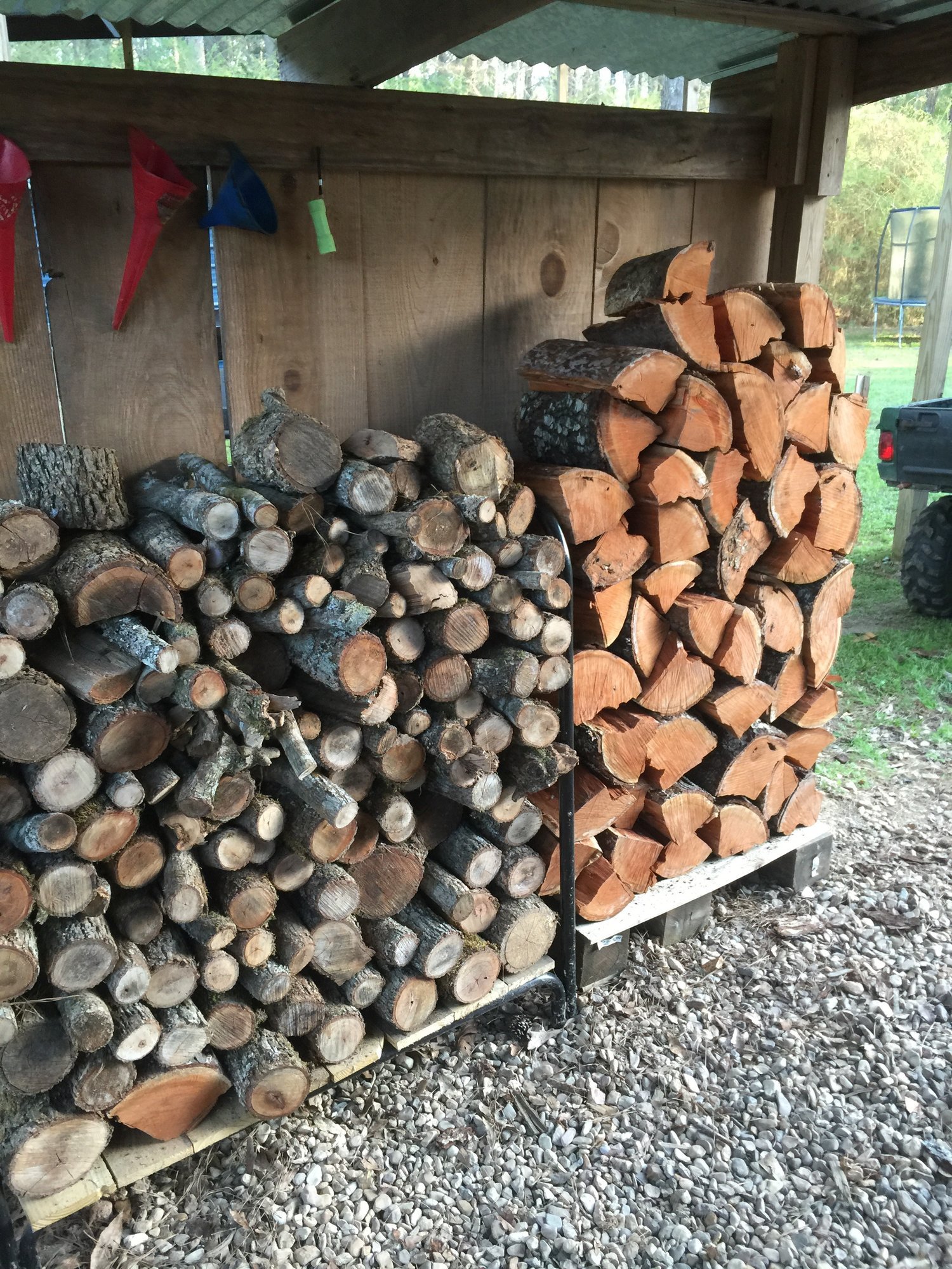 Taking this thread in a slightly different direction.....You have your wood covered....it should not go bad on you. Met a guy a few years back, and he had a similar covered wood storage. He was burning wood that he had harvested over 30 years ago when Hurricane Hugo came through SC. It was beautiful wood and burned like a charm. Congrats on making your own lump though.Ellijay GA with a Medium & MiniMax
