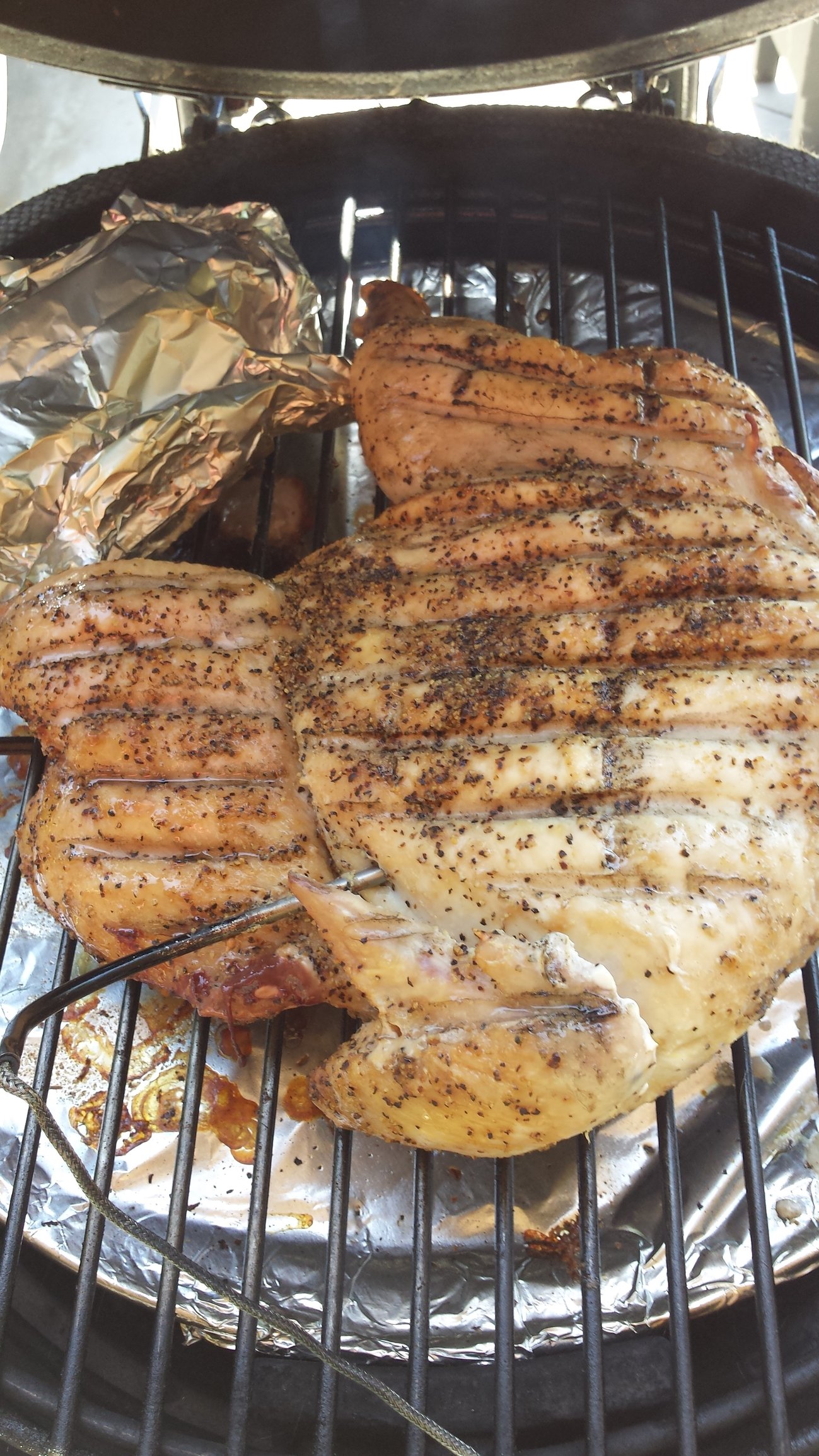 Also I went with a little smoke to add another layer of flavor. I love the flavor pecan gives poultry, so place a couple chunks of pecan wood chunks directly on the hot coals