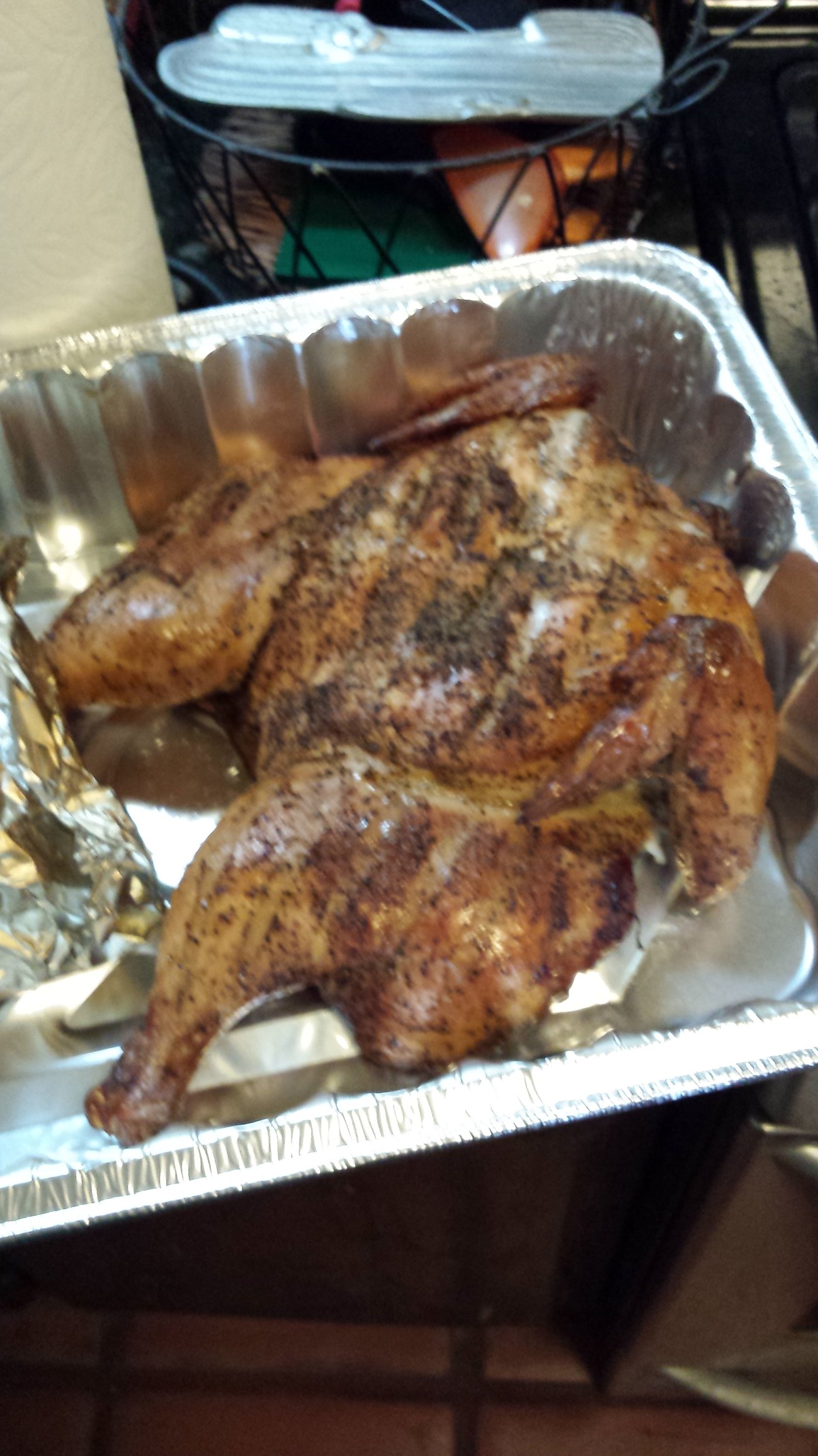 I started with a 5 lb chicken, seasoned with Albikurky Green Chili Rub, which has a, incredible Southwestern flavor to it.