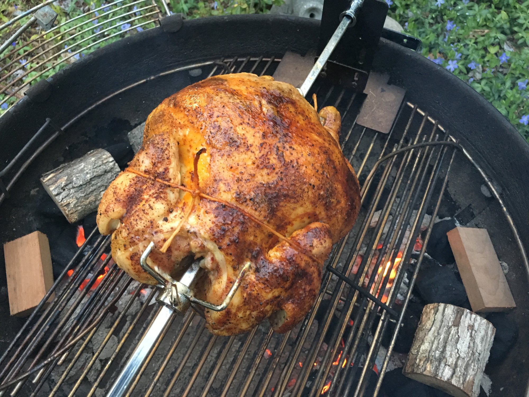 Thanks, I've considered doing just that. This was far easier, but three hours is a LONG time for a chicken!caliking said:What about making a ring out of aluminum flashing? Cut notches for the spit rod. Make it high enough and you can set the Weber lid right on it. That's how the Weber rotisserie ring is set up.