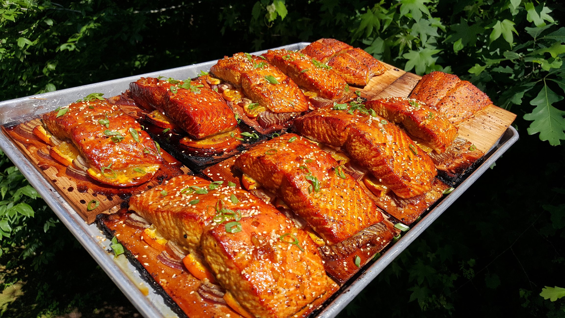 My initial intent was for presentation, but the layer of onion and orange seemed to help keep it very moist.Eggaroo said:Looks scrumptious! Craig - you didn't mention in the recipe putting the red onion and orange slices underneath the salmon. Does this add much additional flavor vs. putting the fish directly on the planks? Thanks for posting. -