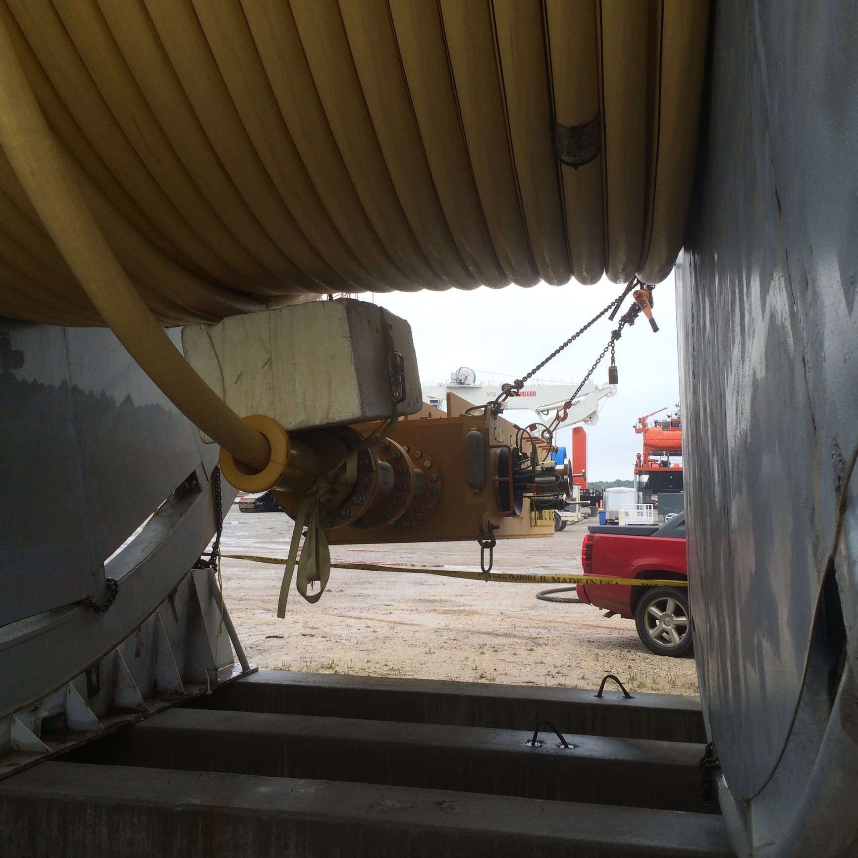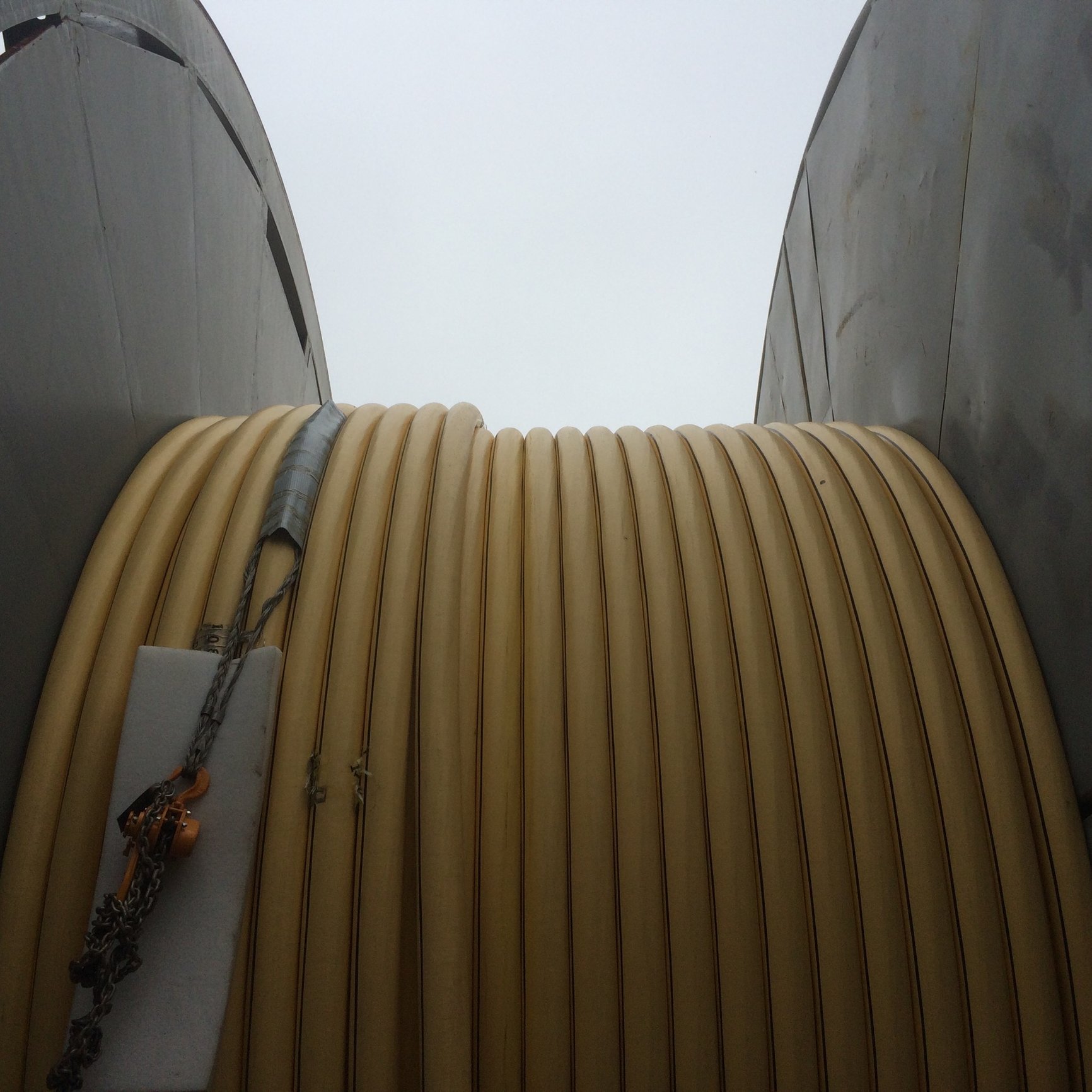 Here is 12 miles of subsea umbilicals rolled or "spooled" up.