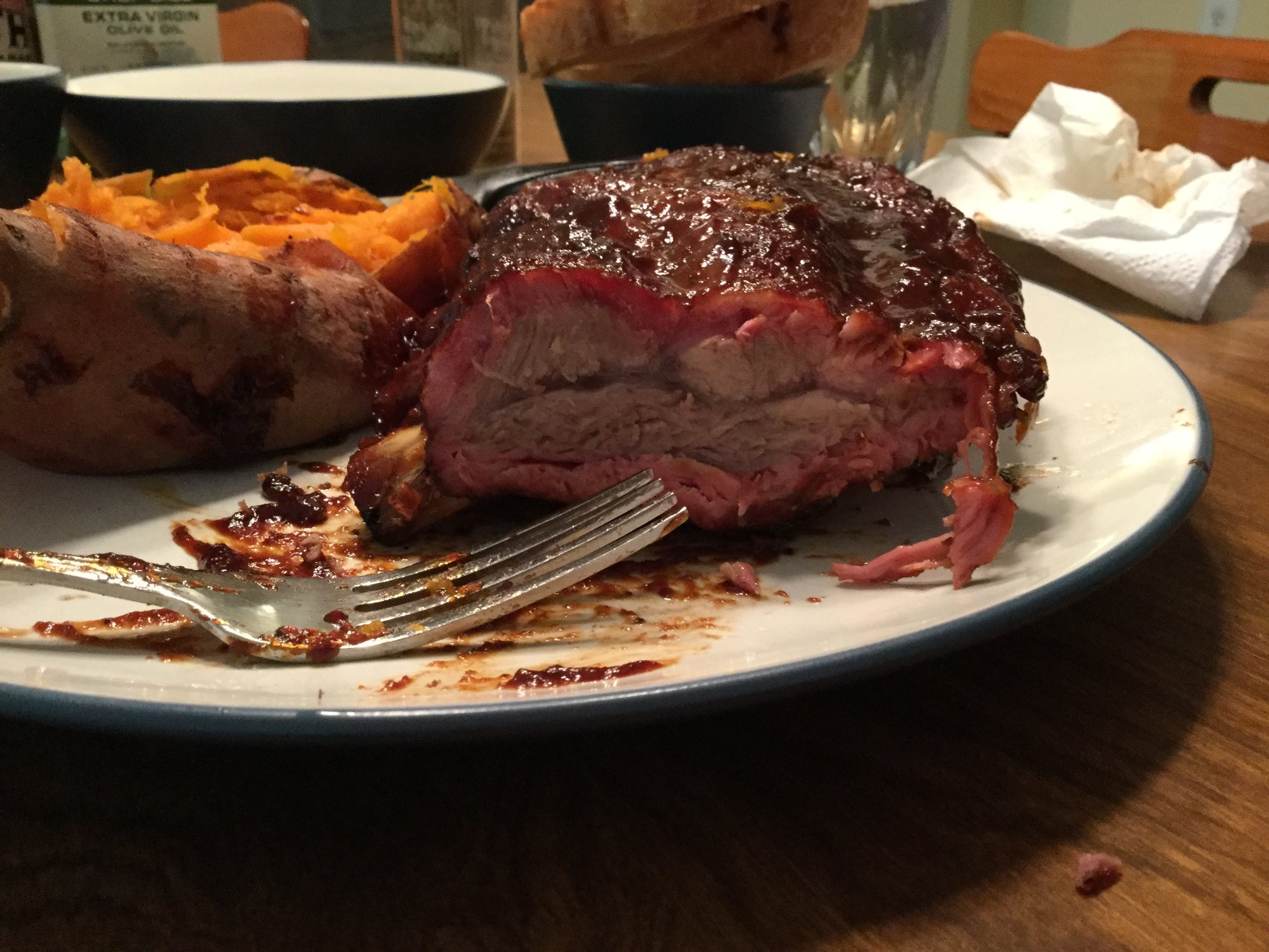 That, and those ribs arent cooked to hell and back and pulled pork, so he probably kept them down a bit.