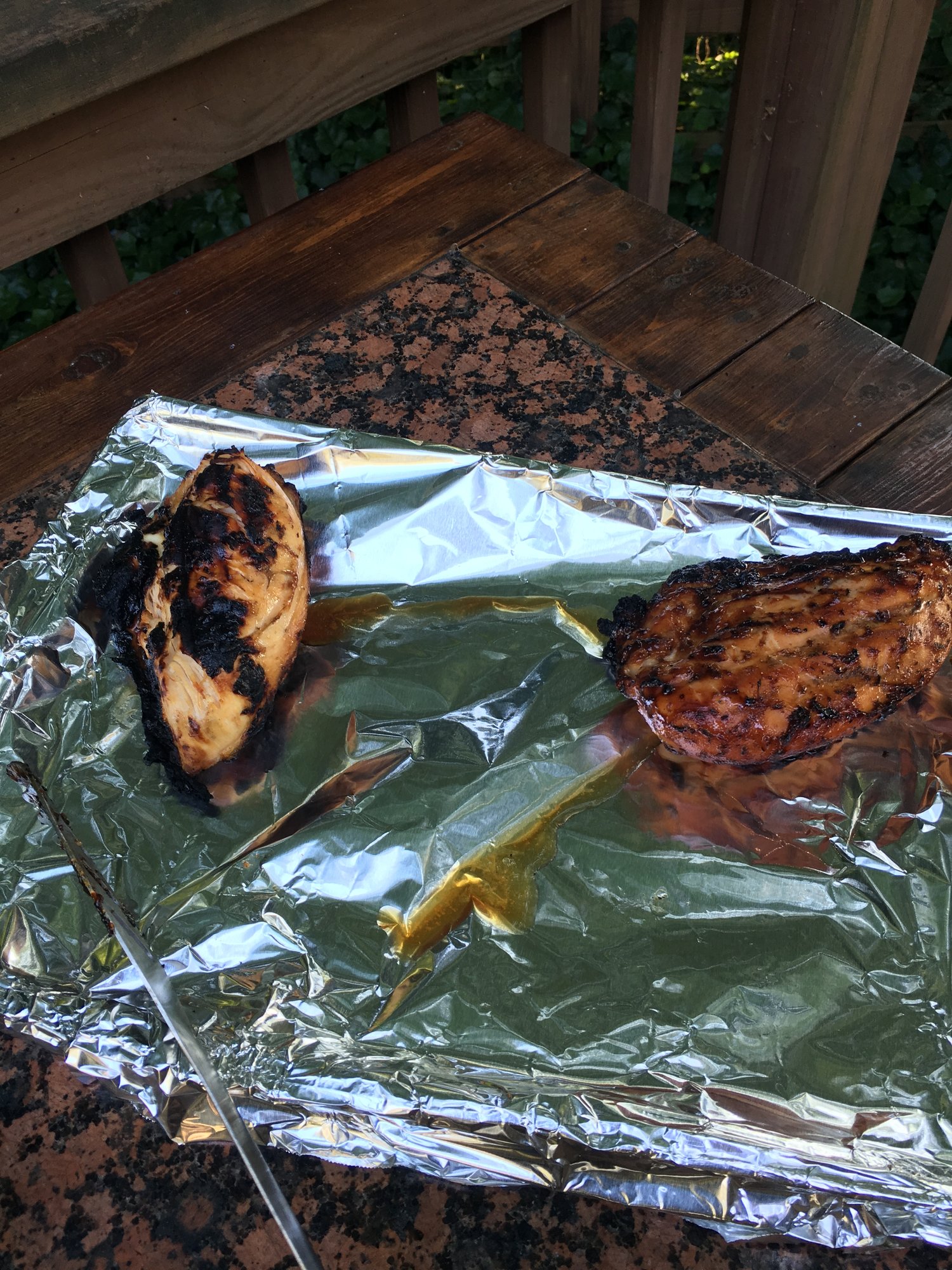 I like a little char on the chicken. You should have seen the one I did on my rotisserie the other day, Too hot for the turbinado sugar in the rub. Wall to wall black. Still tasted good though!