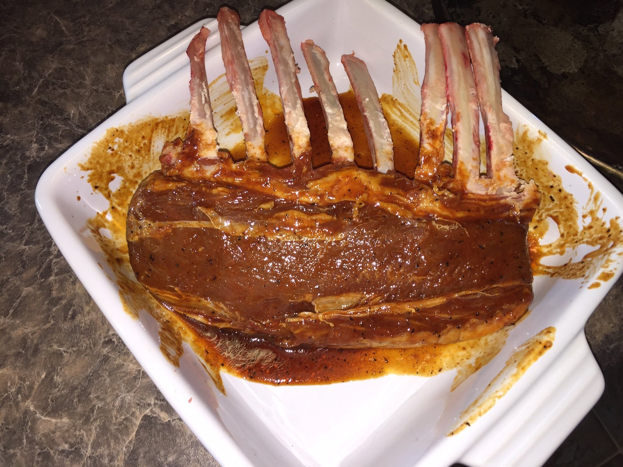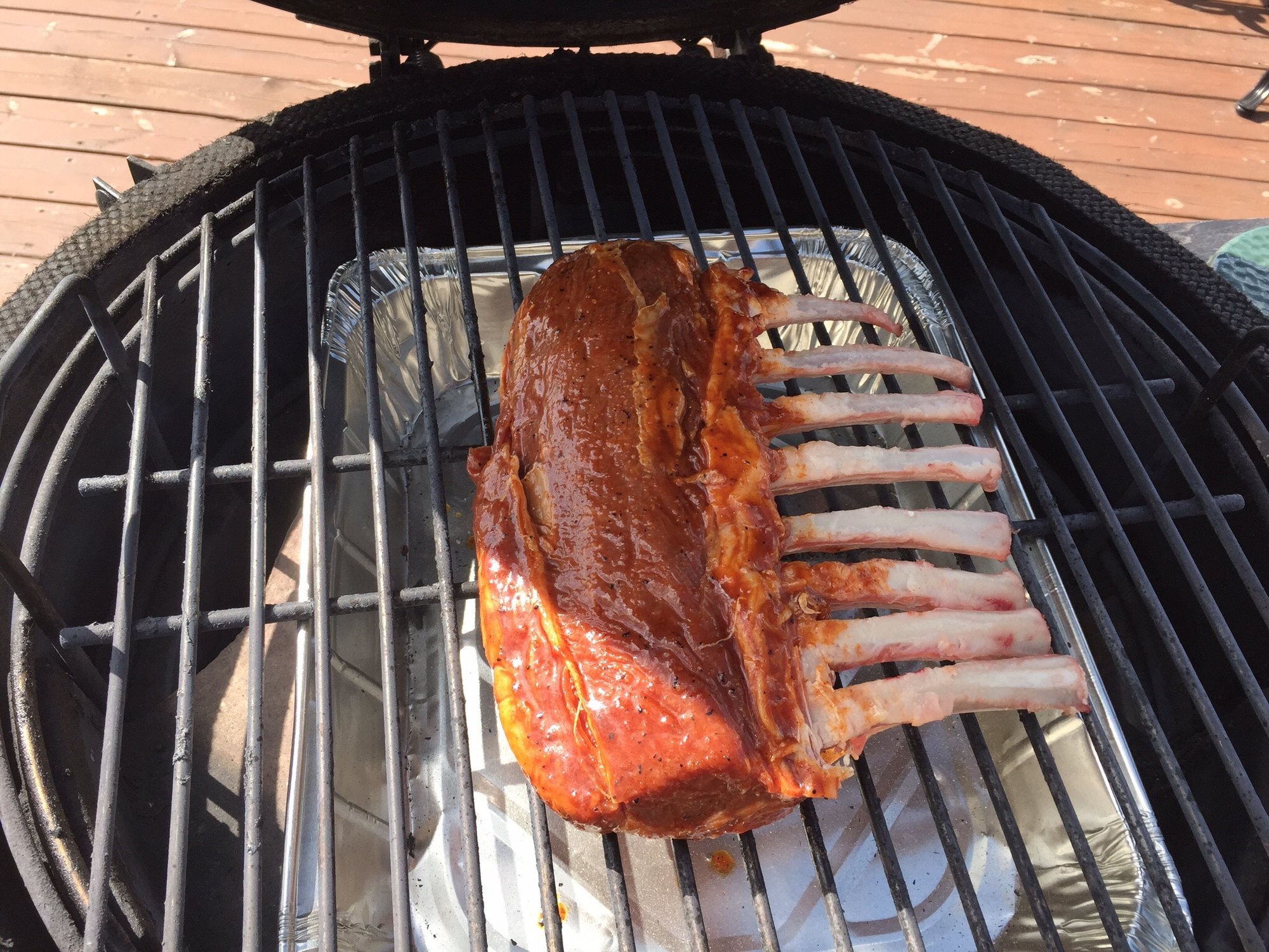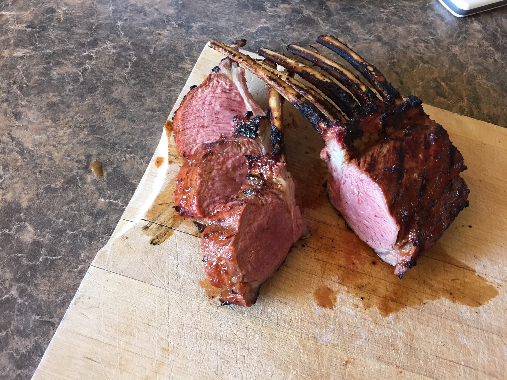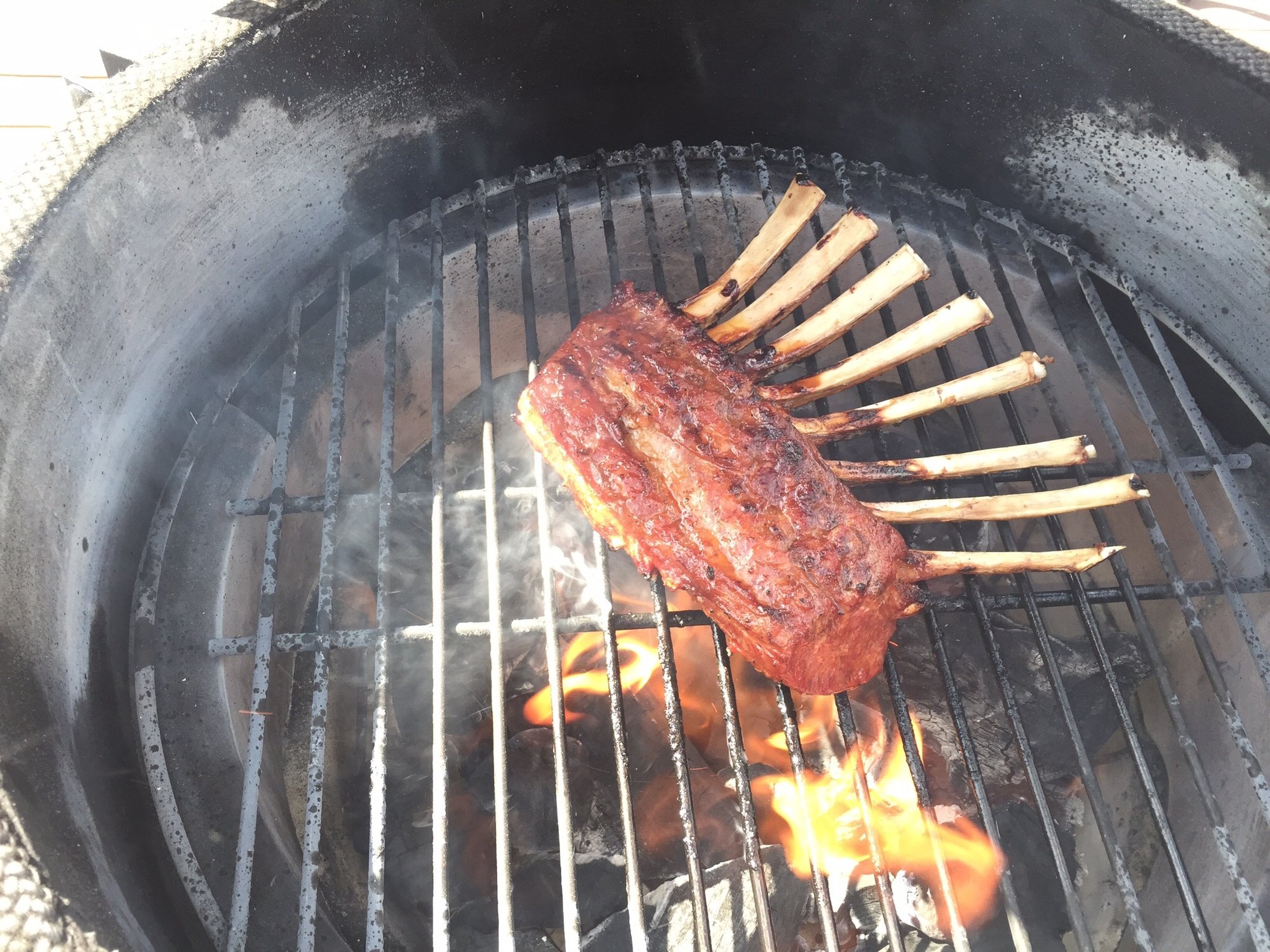 I marinated the lamb for a few hours at room temp. Fired up the egg for indirect at 400f. Took the lamb out, dropped the grate and let it come up to 600 f. Seared it up for a minute or 2 per side.