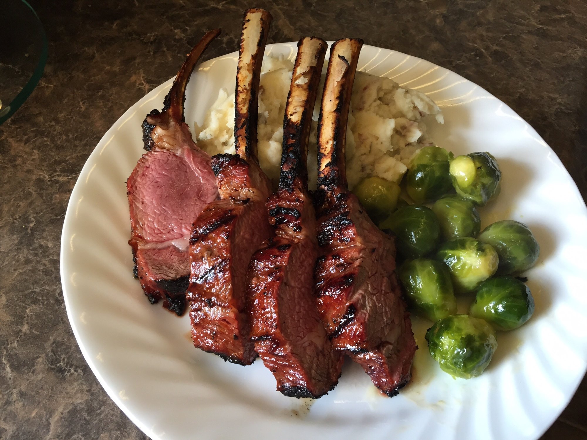 I did Korean glazed lamb, and she did Parmesan mashed potato and Brussels sprouts.