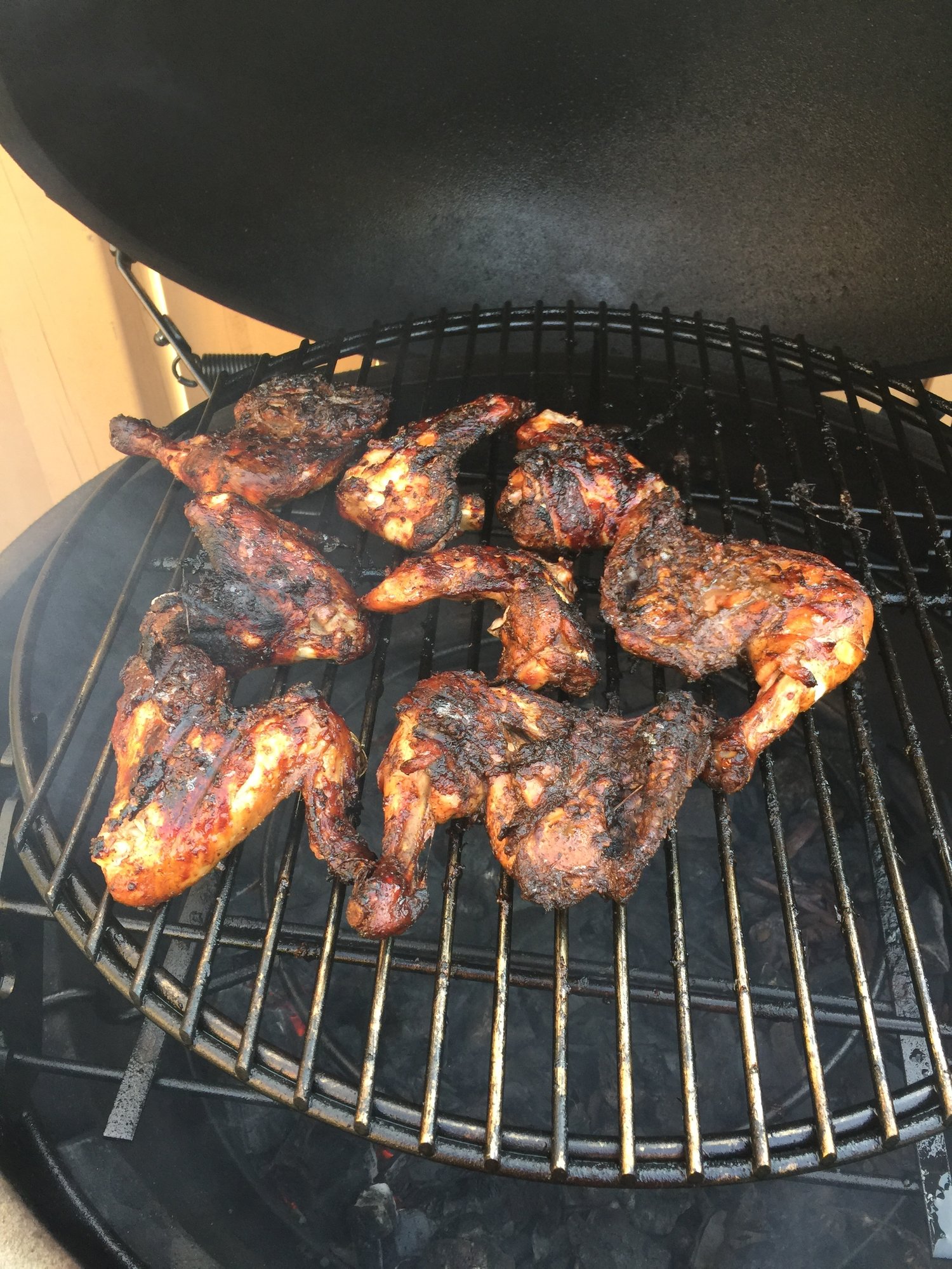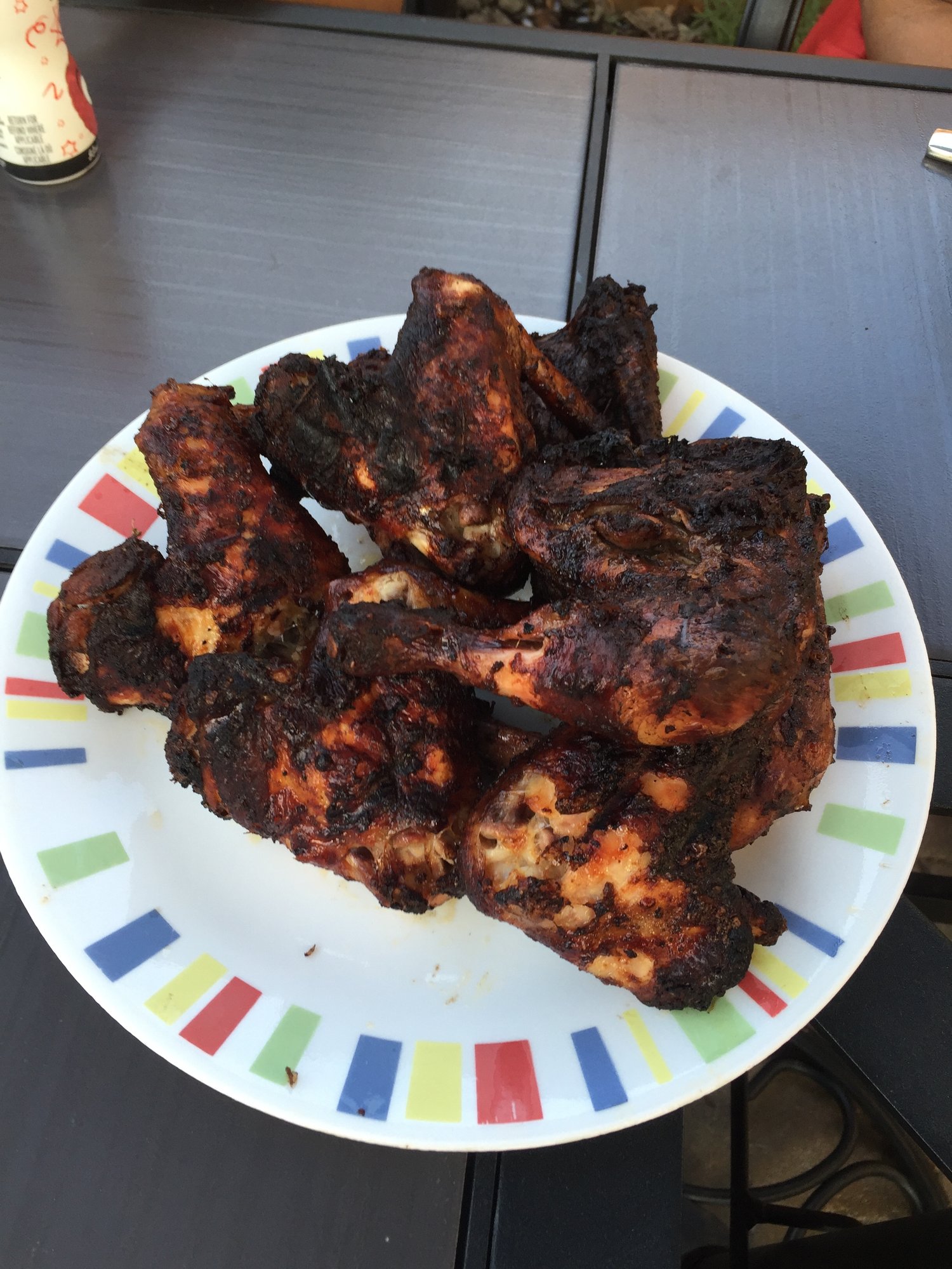 Jerk chicken, washed it down with some Moscow mules. Went raised direct around 350 in a foil tray and then finished raised direct out of the