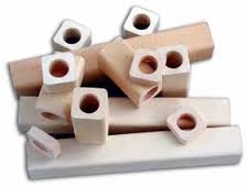 Granite is pretty heat resistant and not very conductive, but its not perfect nor (in my opinion) enough by itself.. I wanted to give my egg an air gap under it by lifting it up a bit. I went to my egg dealer and they gave me 3 of the green egg feet that used to come with a new egg. BGE doesn't sell them anymore. but many dealers still have a lot left around in the back. An alternative to official egg feet are "kiln posts" used in kilns to fire pottery. "Kiln furniture" is VERY heat resistant...some firing needs temps near 3000 F. Kiln furniture are things that go in the kiln to hold up and separate the clay pottery that is getting fired. They come in all sorts of shapes and sizes. You can get straightforward for as a buck or two per post Here are a couple of pics of posts. first is a set of 1" x 1" x 1" posts, second is a package collection.