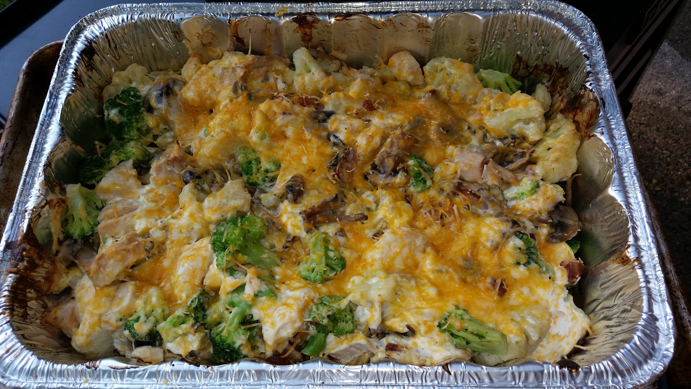 And this past Saturday I cleaned out the fridge a bit for a cheesy chicken vegetable casserole. The AC was on in the house and I didn't want to turn on the oven so the Egg went to use: