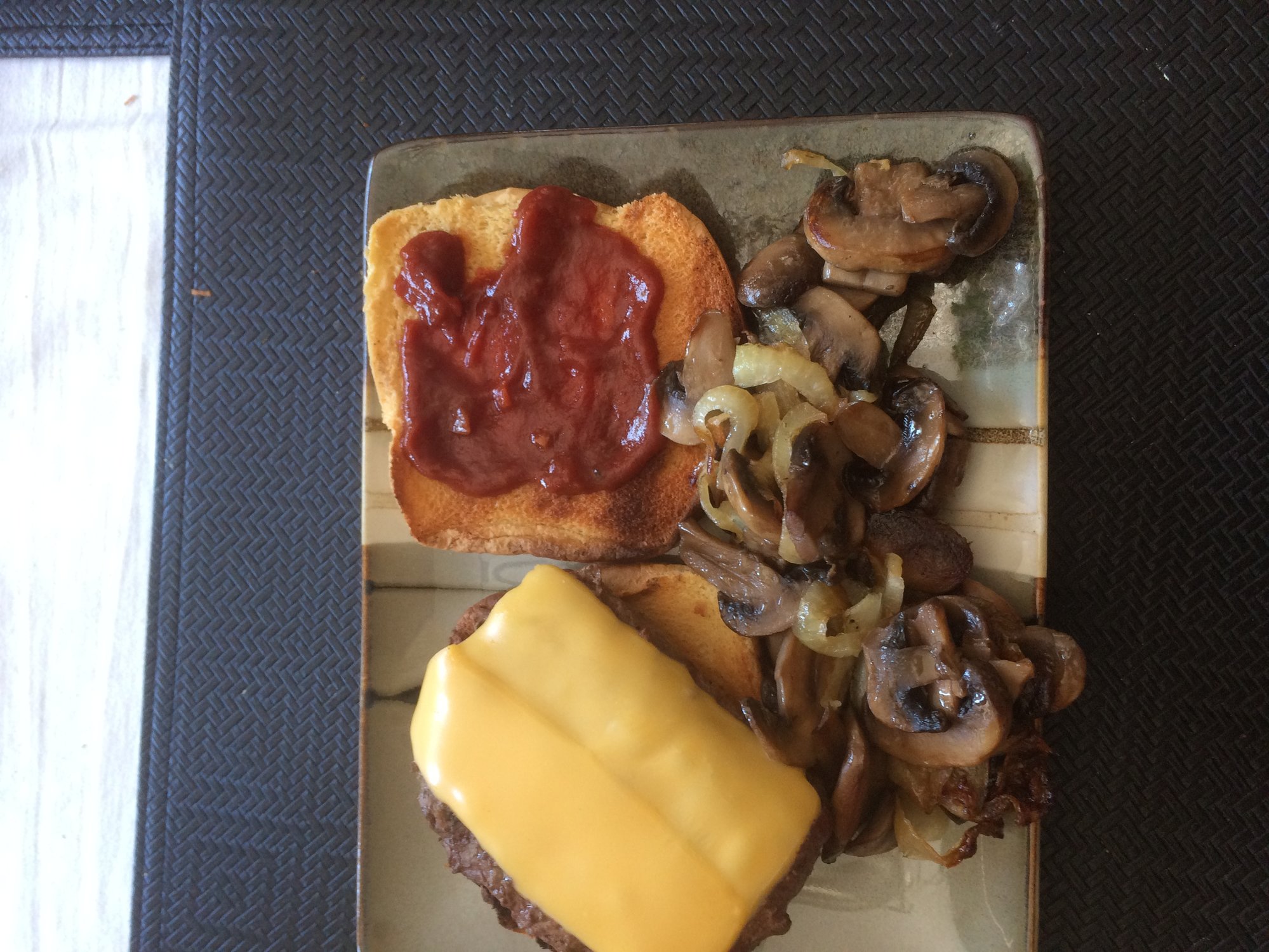 :I added some sliced mushrooms and ten minutes later put the burger on.