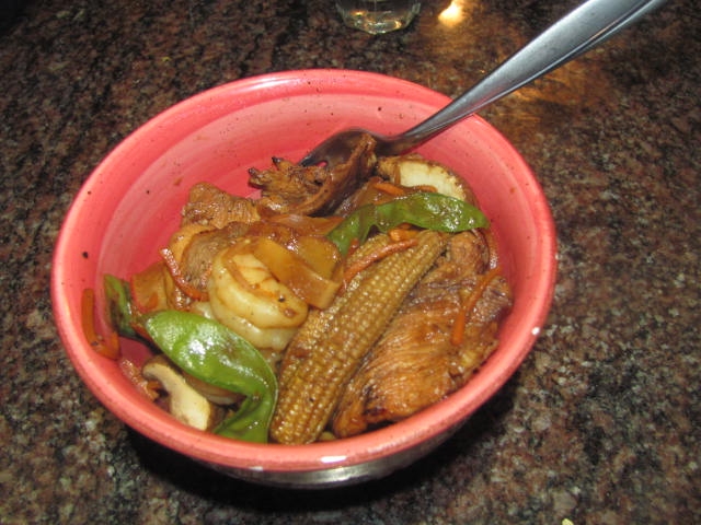 Pretty good week day cook but not my best wok meal. Teriyaki had fresh garlic and lime. Wok was hot enough that the peanut oil flashed when added.