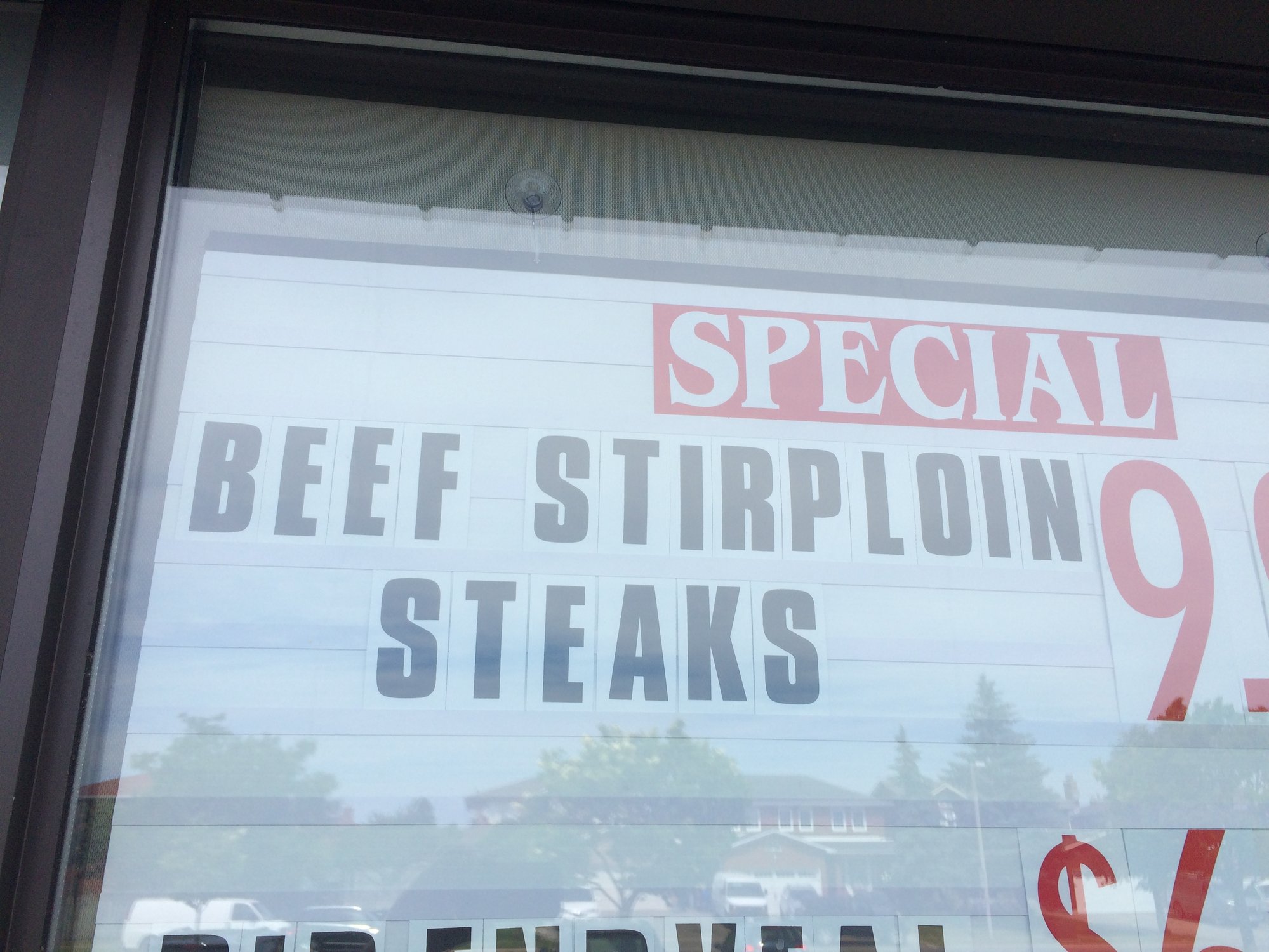 As the sign spelled it, "STIRP" Loin here near boston is an abbreviation for where the stirrup hits the flank of the horse. Less tender than where the jockey hits it with a riding crop, which are crop steaks. But still flavorful