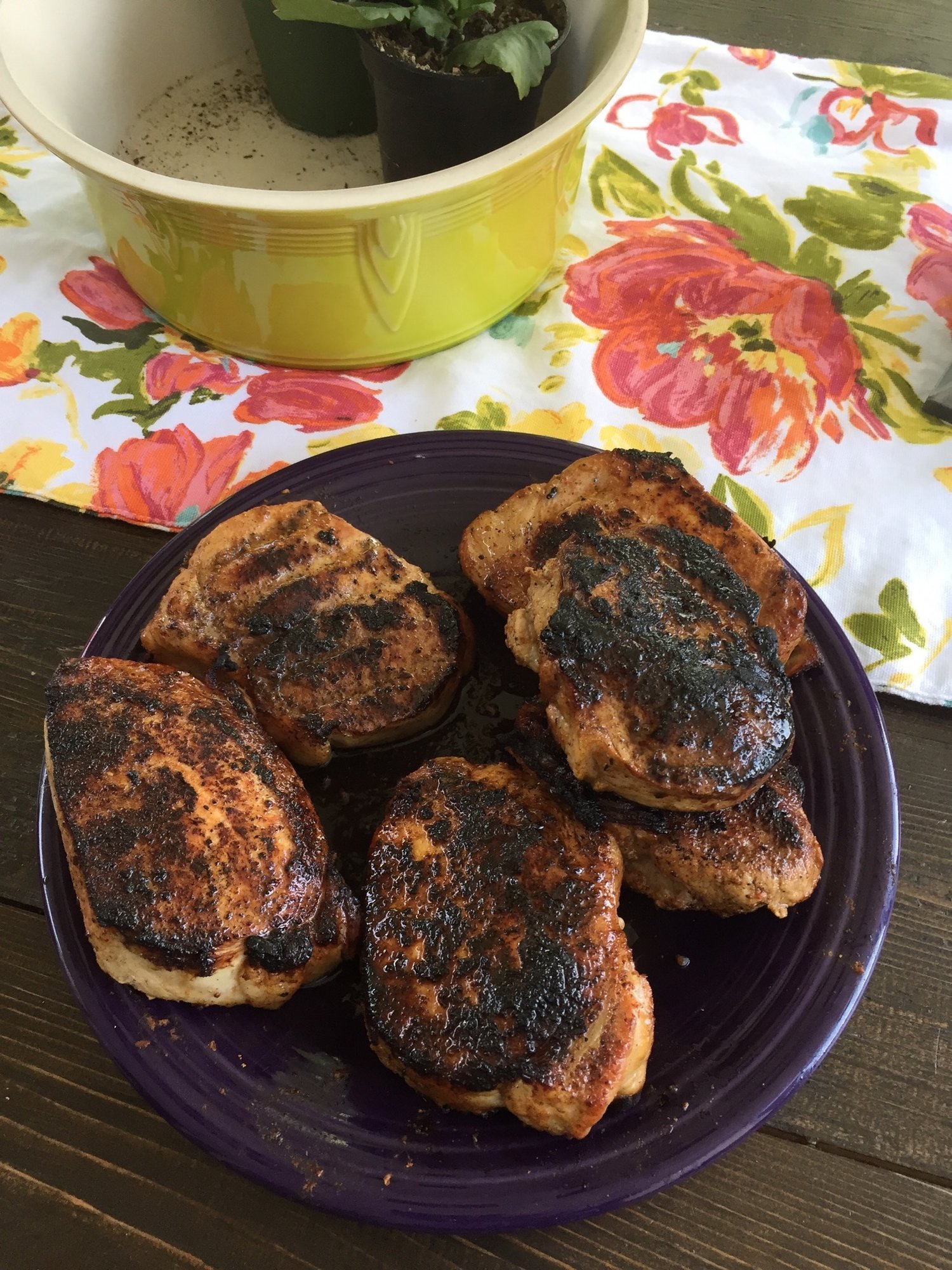 Secondly I've been on a hunt to try to find a pork chop that tastes as good as Perry's in Houston and Dallas, best pork chop ever. The ones I'm cooking aren't seven fingers thick but the flavor was incredible!