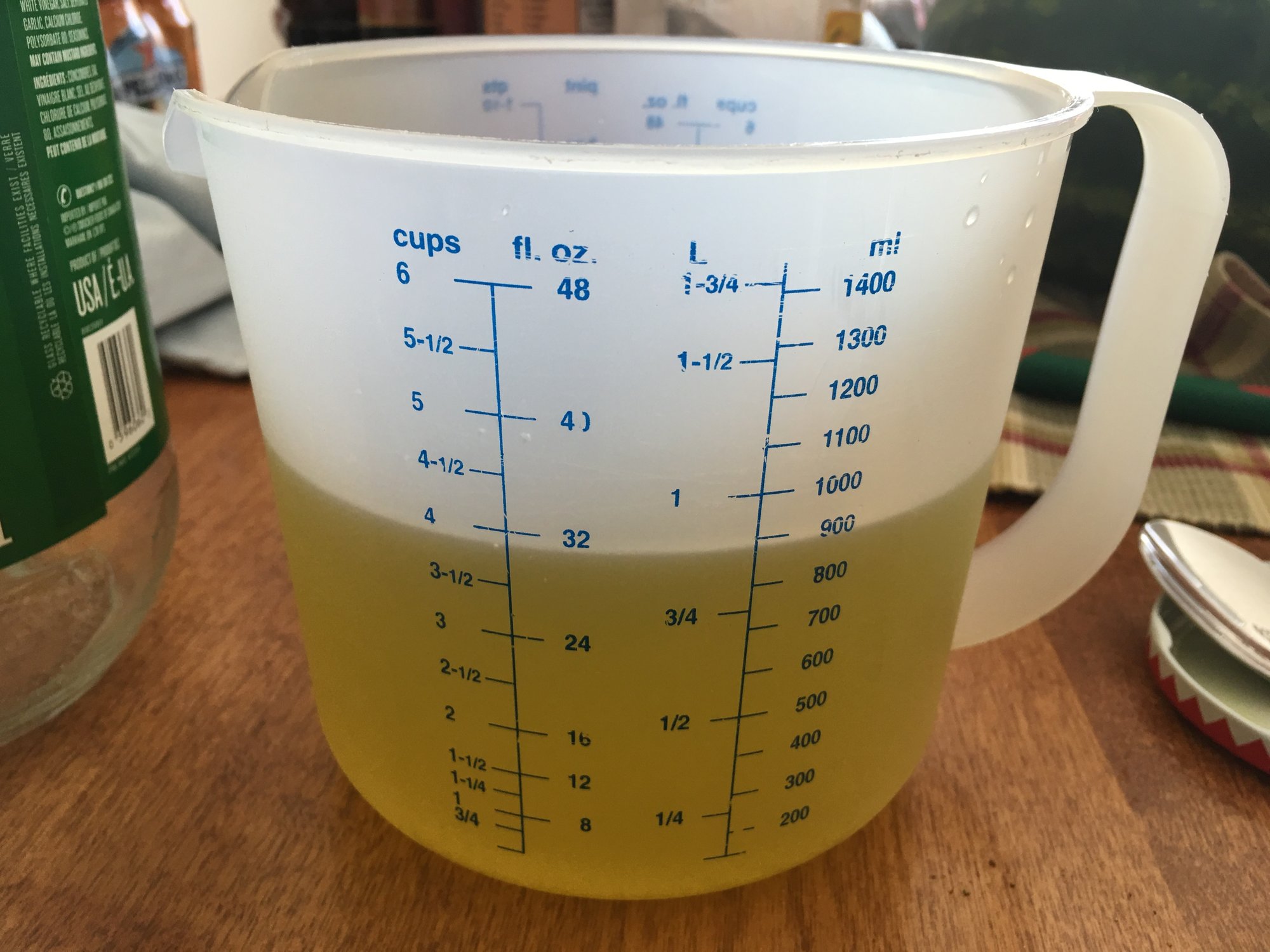 -Empty the brine in a bowl (there was 900 ml/32 oz) and keep 700 ml/24 oz (I use the extra brine in Bloody Cesar's).