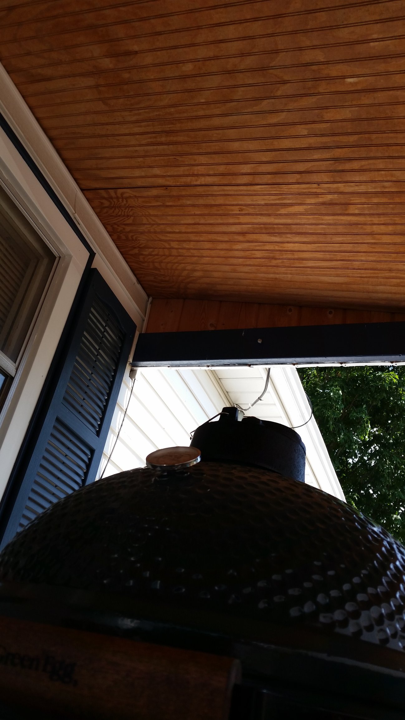 I also egg under a covered patio with a brick pad. Lots of air flow, been no issues so far.Wisconsin, lbge, MM, kab, pig tail flippers, bear claws, and more rubs than I will admit to.